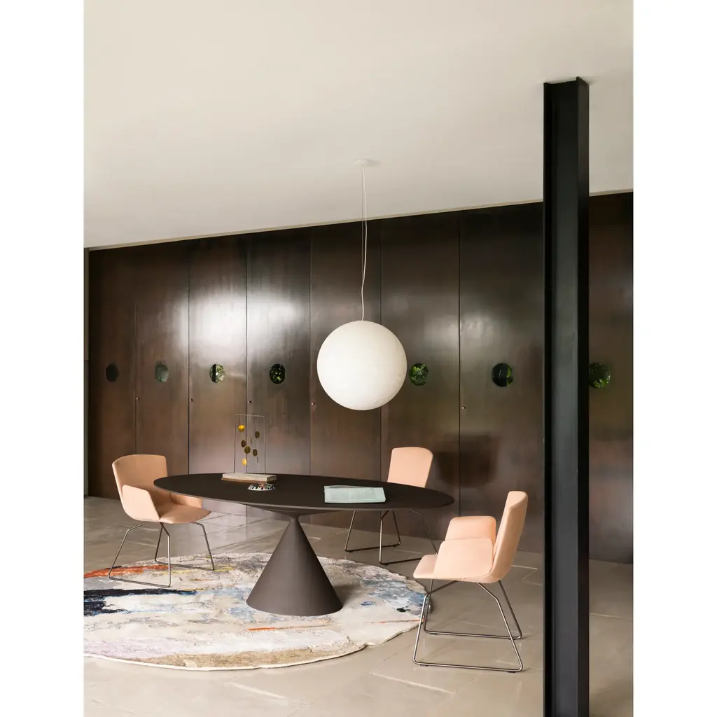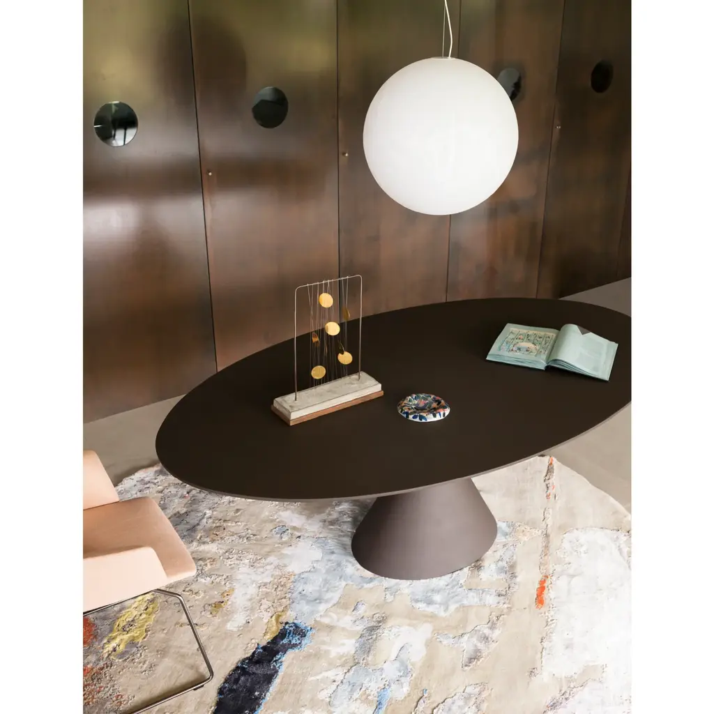 Introducing Clay, a table-sculpture that balances minimalism and artistry. Its geometric volumes create a luxurious product, available in oval shape with a hand-spread materic finish and various top options. Experience the bold support of the reduced polyurethane base, perfect for indoor or outdoor use. Elevate your space with the optional "Lazy Susan" centerpiece.