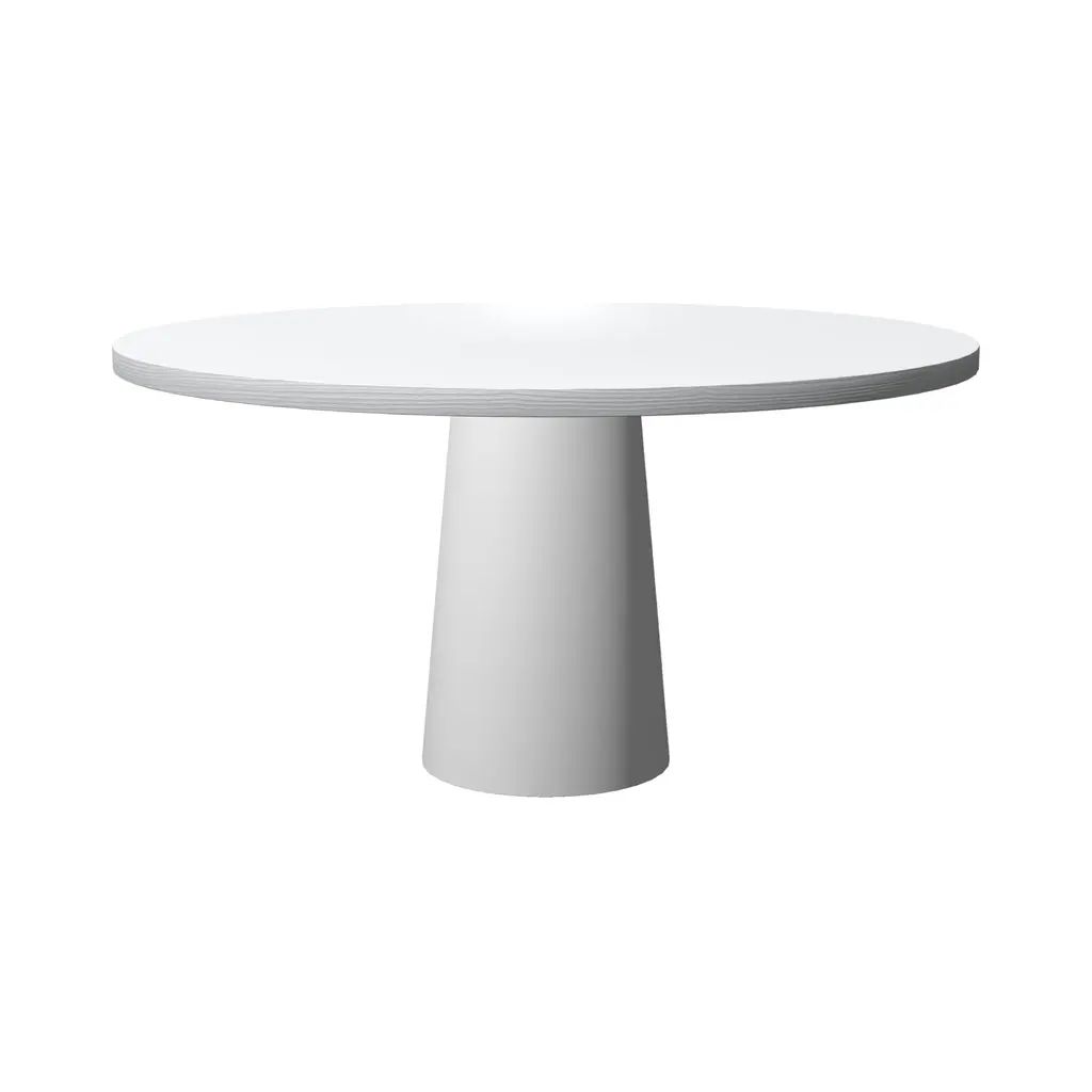 Outdoors or inside, anchor a dining area with Moooi’s round Container Classic with a range of 3 sizes that seat up to 10 persons. This lightweight design from Marcel Wanders studio has a timelessly architectural, cone-shaped PE base that is easy to move around—and then stabilized in place by filling it with sand or pebbles. In white, black or grey, tabletops are offered in HPL, a weatherproof next-gen laminate to match or in oak veneer finishes for interior use only.