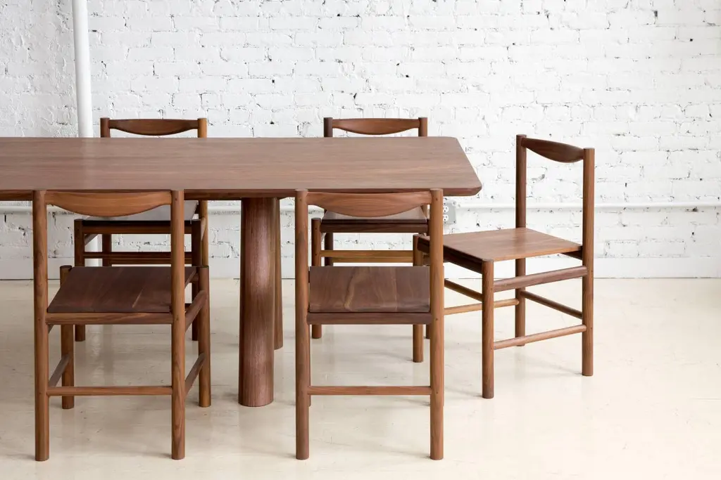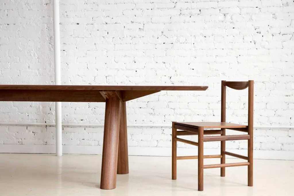 Contemporary Angled Leg Column Dining Table In Walnut Wood By Fort Standard