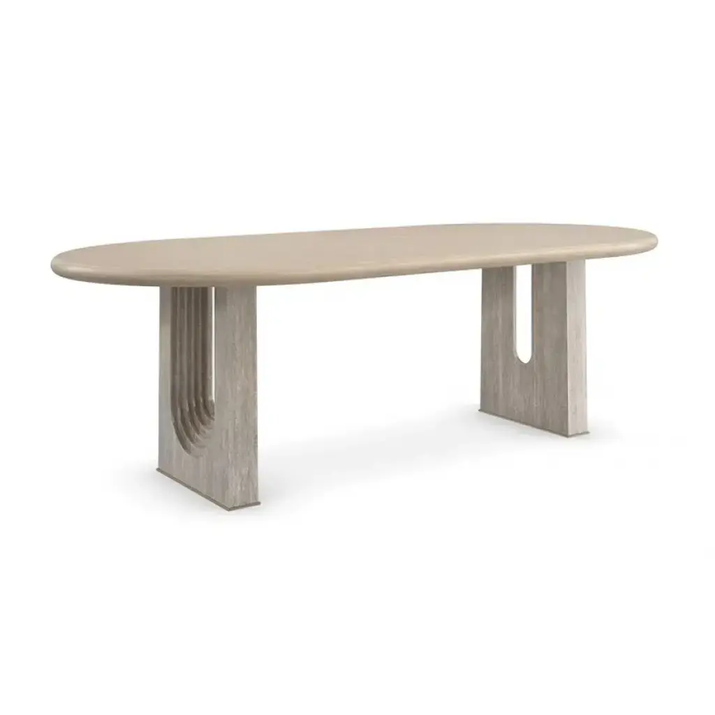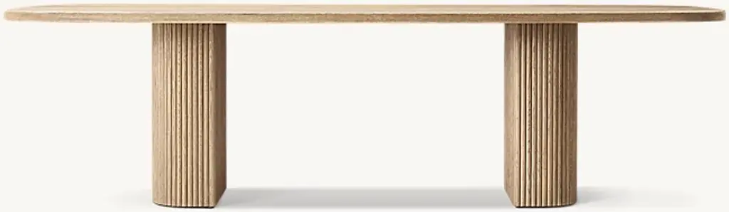 Represented by Tuleste Factory This spacious table is built on two pillars, each one shaped by the soft curves of inverted flutes, mimicking a gateway with an open and inviting form.Available in three colors.Architect CARLOS MEZA holds a B.A. from Javeriana University in Bogotá, Colombia and an M.A. in Advanced Studies Design from Pratt Institute in New York City. In 2005, Meza was awarded a commission to design a public library for the city of Villanueva, Colombia. The project has been widely praised in journals as well as national and international publications, including an honorable mention in the Colombian Architecture Biennale. Meza has also designed projects in China, the United States and worked as 3D Modeling and Digital Fabrication adjunct professor at Cooper Union University in NYC (2014-2016).BLACKTABLE Studio was born in 2013 as Carlos Meza’s personal response to the corporate architectural life he experienced in his first years living in New York. See our shipping policies. For quotes, please contact us. All sales are final.