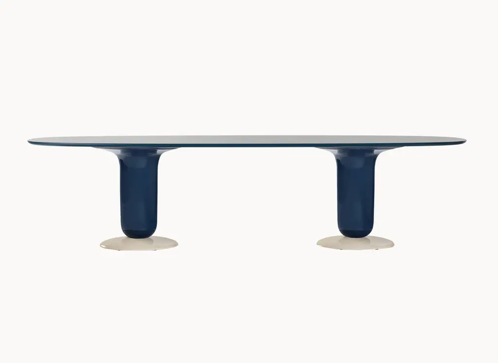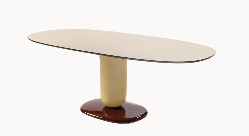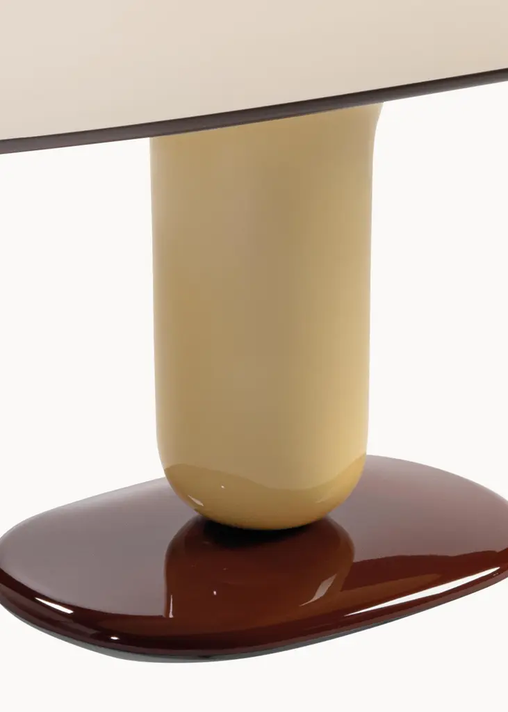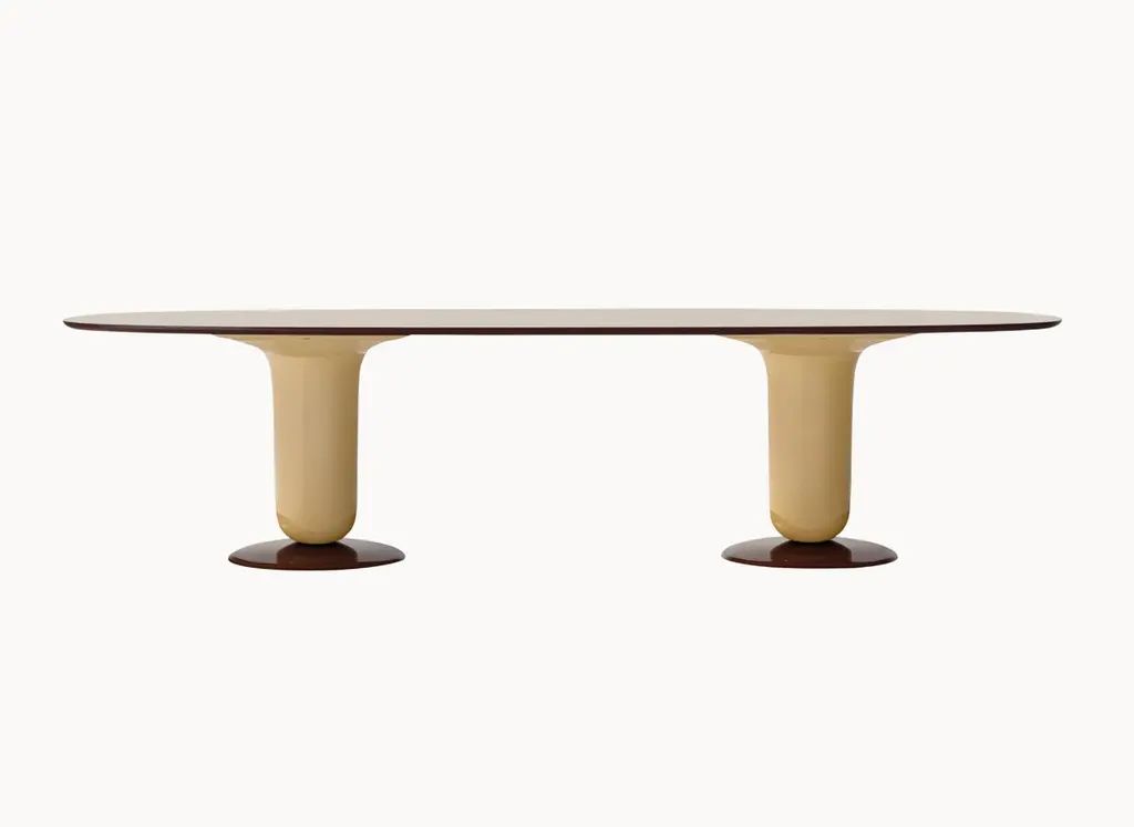 Explorer Dining Table by Jaime Hayon, 2023Model Multicolor Beige - EXPLORER 5B (220 CM)Dimensions: W. 220 x D. 100 x H. 73.5 cm (86,6 x 28,9 x 28,9 inch)Finishes combinations: - Multicolor Blue: Laminated top Grey Perle, Underside top grey blue, Body Grey blue, Base Light Ivory- Multicolor Ivory: Laminated top Grey Perle, Underside top Grey blue, Body Light Ivory, Base Fir green- Multicolor Beige: Laminated top Beige, Underside top Chocolate brown, Body Beige, Base Chestnut brownInspired by one of mankind’s greatest achievements, the latest member of the Explorer family is crafted with space-age curves and the highest precision.The Explorer series comes straight from Hayon’s own cosmos—his drawings—into light-hearted but elegant objects, finished in playful, beautiful glosses. For many years, Jaime Hayon has designed pieces of furniture with simple, organic forms—in anticipation of children running around their edges, also just because they are elegant and beautiful.The latest member of the Explorer family uses the same clean curves and playful colours as its predecessors: a dining table, several side tables, and multiple vases. A family that comes in an ever-expanding range of sizes and colour combinations, a perfect addition to any living space.Cupboards, doors and drawers in MDF. Exterior lacquered in gloss finish and interior lacquered in matte finish. Legs in solid alder wood lacquered in gloss finish. Horizontal shelves and vertical bracket supports in MDF with lacquered gloss finish. Interior drawer units in MDF with lacquered matte finish.