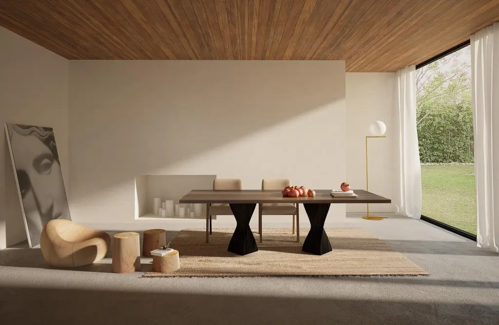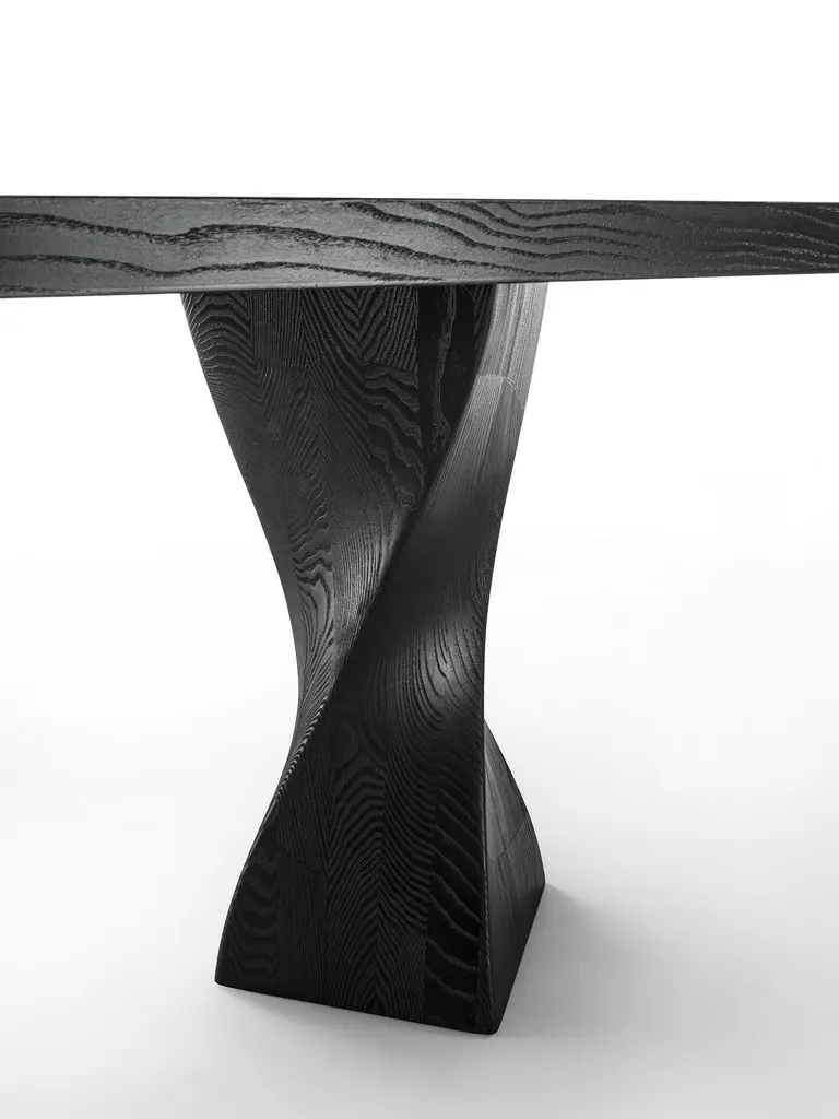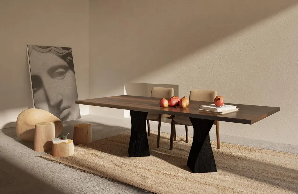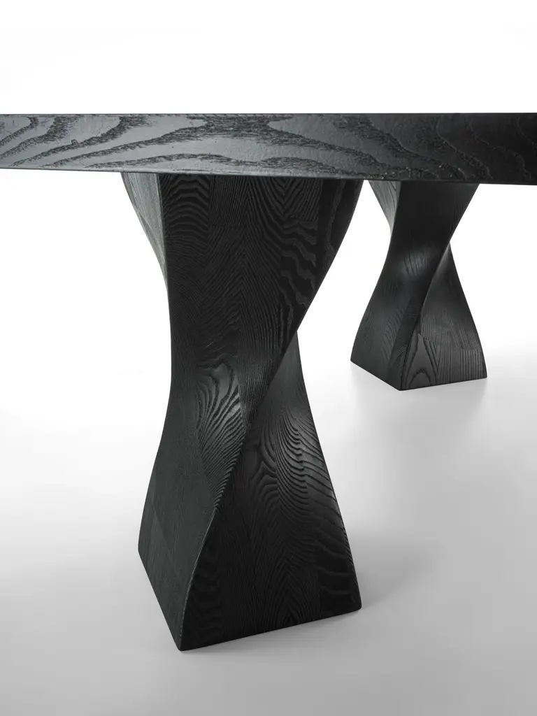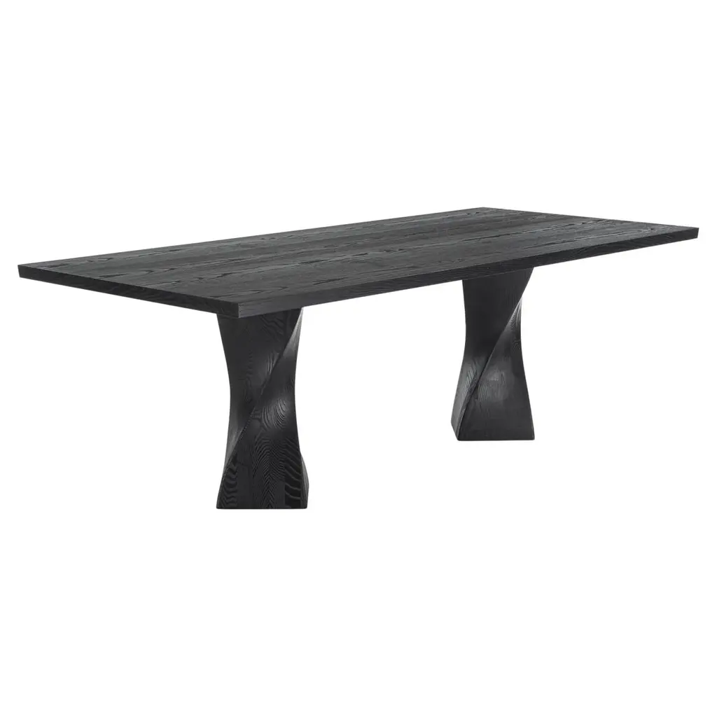 This table made its debut at the 2023 Salone del Mobile event In Milan. If you'd like to learn more about customization options and available finishes, we encourage you to get in touch with us.Crafted by Studio Excalibur, this exquisite piece features a blockboard veneered top, distinguished by its elegantly beveled edges. The table stands out with its two solid wood legs, finished with a unique pigmentation process. This innovative approach to materials and design imbues the legs with a captivating sense of motion and vitality.We do our best to expedite production and to ship and deliver product within the listed lead time, however current lead times might be longer due to global shipping backlog and delays. These delays are out of our control and cannot be a reason to cancel an order.