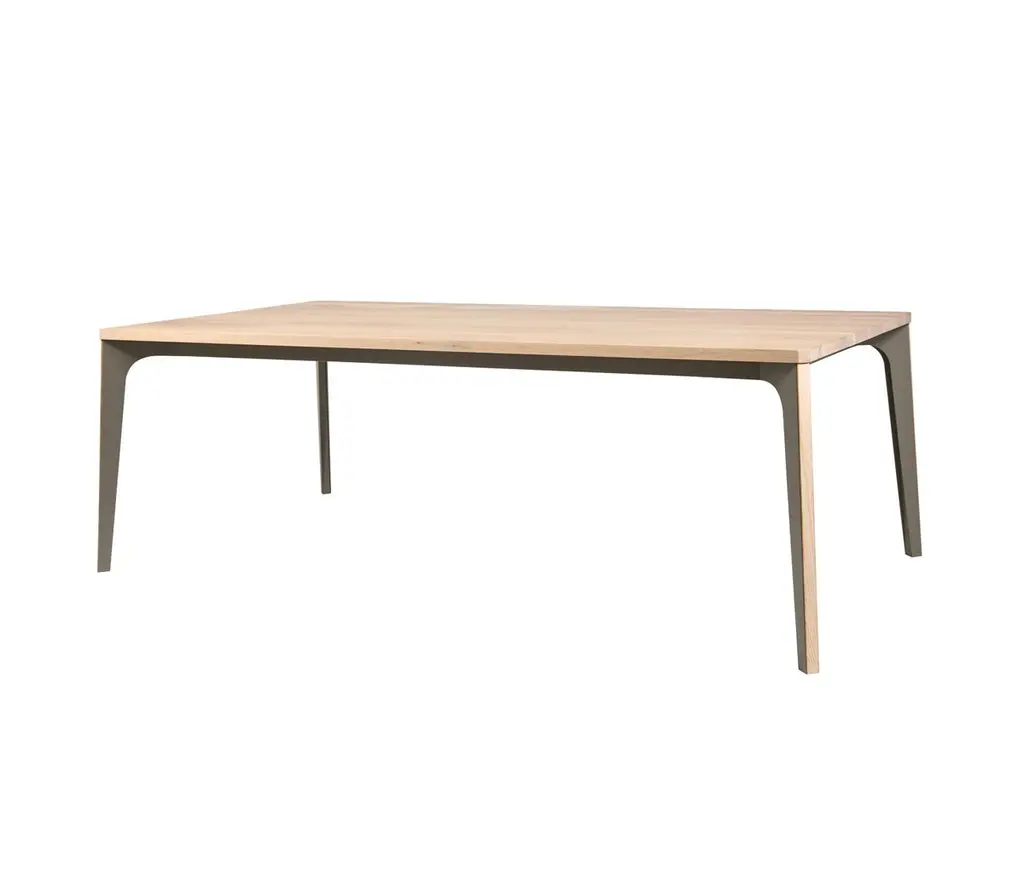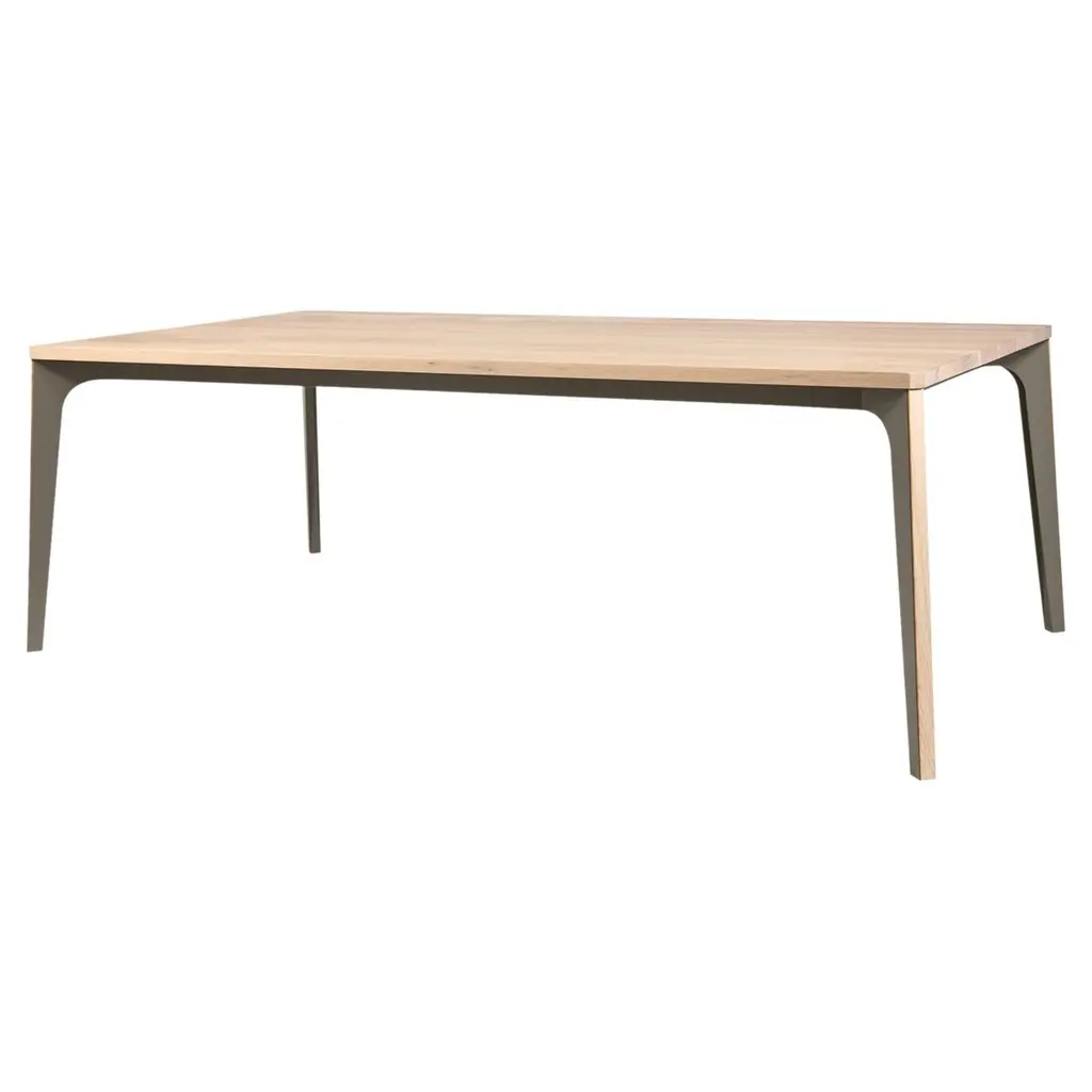 This dining table has a metal structure and a wooden top. There is a wooden profile on the edge of each leg. Top : veneer oak.Available in different sizes and different materials such as Solid Oak, Solid Walnut, Lacquered and Veneer Walnut.The price is subject to change by choosing different materials or sizes.Please contact us if you have any questions about customization and pricing. We will be glad to check with the factory’s technical team if sizes, finishes, and colors can be customized. We do our best to expedite production and to ship and deliver product within the listed lead time, however current lead times might be longer due to global shipping backlog and delays. These delays are out of our control and cannot be a reason to cancel an order.