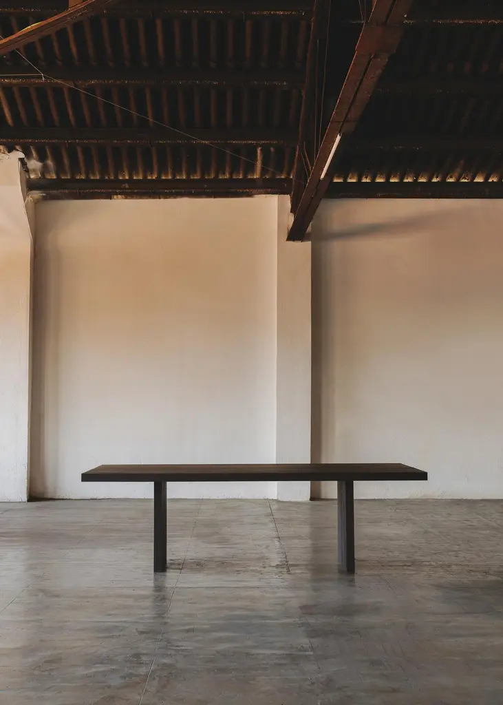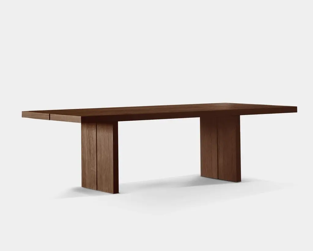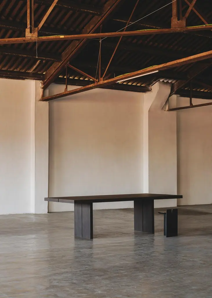 'Murakami' Dining Table designed by Studio Obstacles in collaboration with Spanish artist Yoyo Balagué.Dimensions:W.250 x L.121 x H.74 cmW.98.43 x L.47.64 x H.29.13 inWood finishes:Natural, Oil, Umber, Coffee, BlackMaterial:Solid OakModel shown on main picture:Umber-----Murakami Table is an exercise in restraint, made without decorative elements. The tabletop is composed of two pieces, set apart by a small separation, that allows a passageway for natural light.Obstacles emerged out of a desire to make objects that are deliberate. They believe in conscious simplification, following a process of geometric reduction that allows the essential quality of each object to emerge. This brand collaborates with a careful selection of Spanish fine woodworkers, maintaining close involvement with them throughout the design process. This partnership allows them to preserve their tradition, reinterpreting their knowledge to respond to a contemporary context.