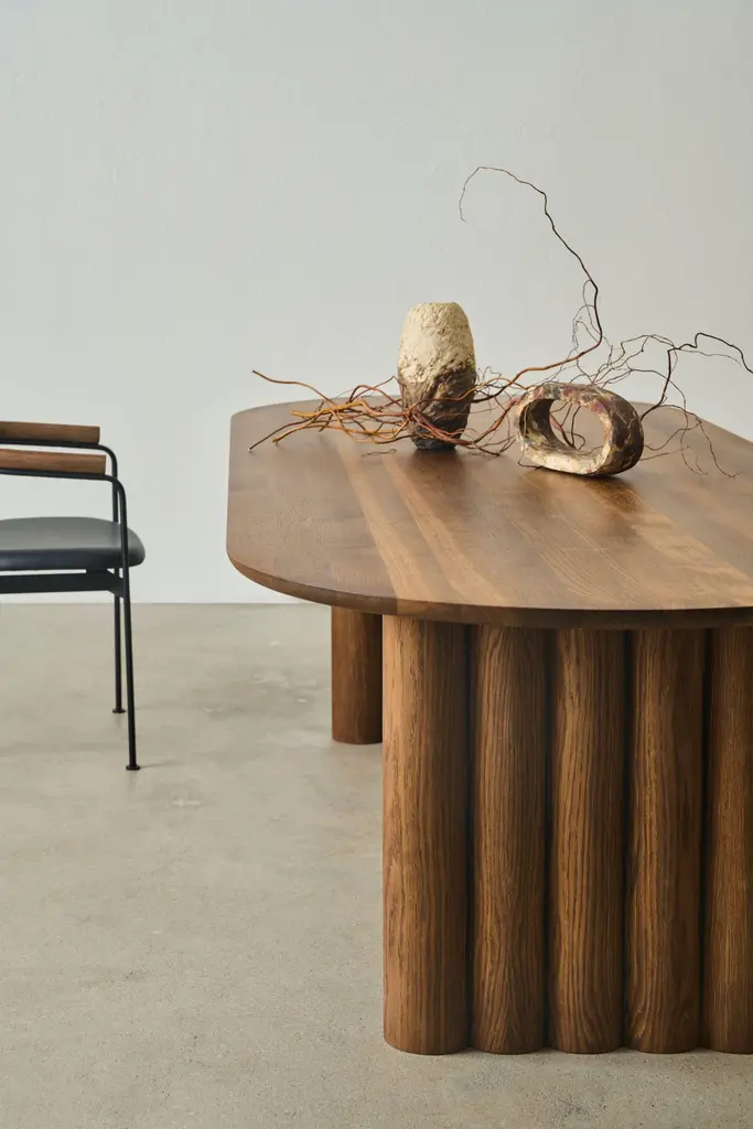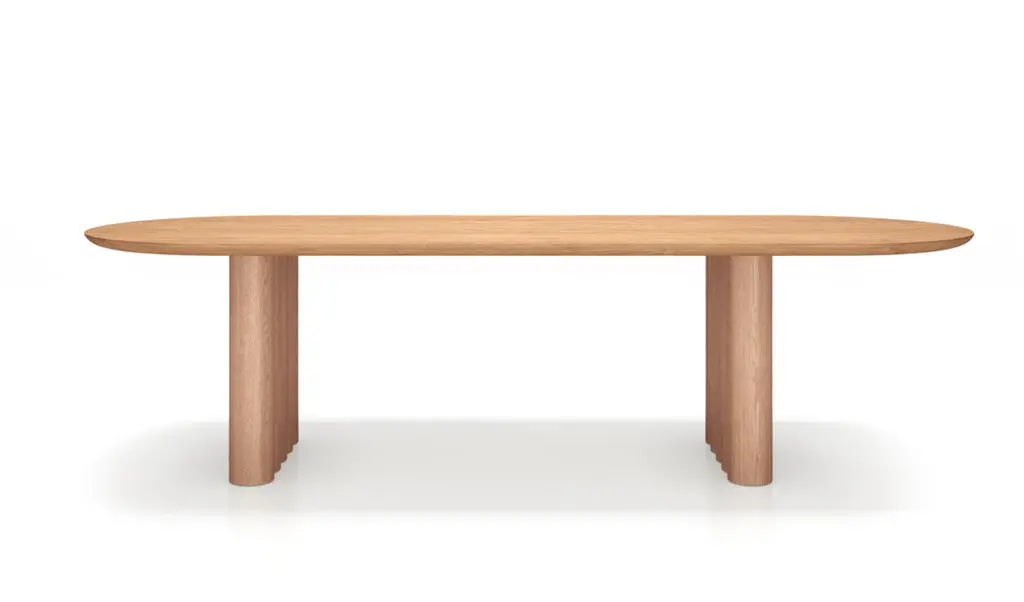 PLUSH dining table, oval, 370 cm.Solid wood table top and legs. Handmade in Denmark. Signed by Jacob Plejdrup for DK3Table's height: 72 or 74 cmTable top’s thickness: 40mmLegs width: 150mmTable top dimensions:– 200 x 100 cm– 240 x 100 cm– 270 x 100 cm– 300 x 100 cm– 340 x 100 cm– 370 x 100 cm– 400 x 100 cmWood:– Light oak– Smoked oak– WalnutPrice may vary according to the wood type and Size. --Plush tableDesign by Jacob Plejdrup, 2023.dk3 was among the first brands to introduce the plank table to the Scandinavian market back in 2009, and with the aim to take this design heritage to the next level, dk3 founder Jacob Plejdrup has developed the anniversary table Ten table in cooperation with Danish designer Christian Troels. The designs of Christian Troels are characterized by a great level of details and craftsmanship accuracy, which, in the Ten table, is perfectly merged with Jacob Plejdrup's basic ideas on large dining tables, such as highlighting the natural beauty of wood in a minimalistic way.