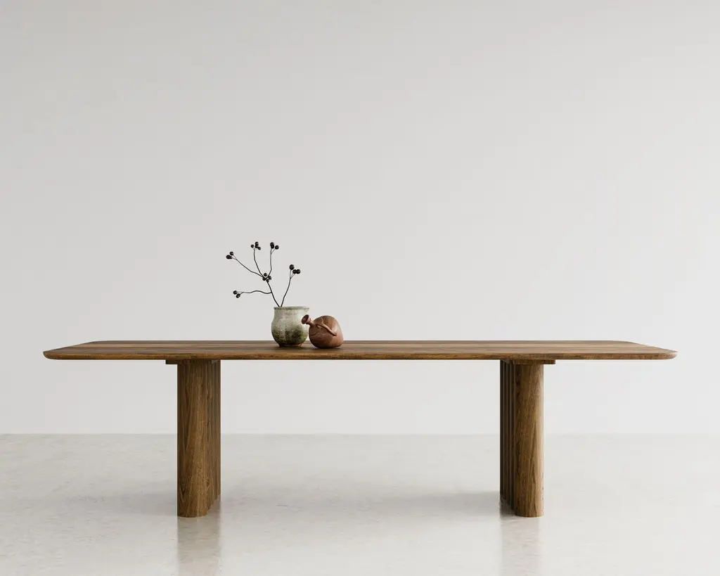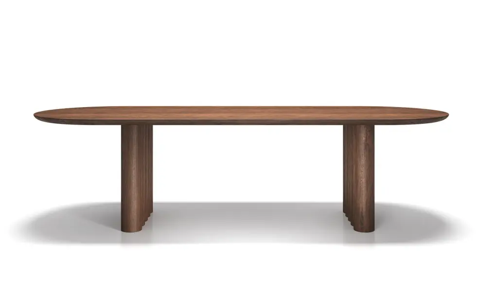 PLUSH dining table, rectangular, 240 cm.Solid wood table top and legs. Handmade in Denmark. Signed by Jacob Plejdrup for DK3Model shown on main picture: RectangularSmoked OakTable's height: 72 cmLegs Thickness: 130 mmTable top Thickness: 30 mmTable's height: 72 or 74 cmTable top’s thickness: 30-40mmLegs width: 130mm or 150mmTable top dimensions:– 200 x 100 cm– 240 x 100 cm– 270 x 100 cm– 300 x 100 cm– 340 x 100 cm– 370 x 100 cm– 400 x 100 cmWood:– Light oak– Smoked oak– WalnutPrice may vary according to the wood type and size. --Plush tableDesign by Jacob Plejdrup, 2023.dk3 was among the first brands to introduce the plank table to the Scandinavian market back in 2009, and with the aim to take this design heritage to the next level, dk3 founder Jacob Plejdrup has developed the anniversary table Ten table in cooperation with Danish designer Christian Troels. The designs of Christian Troels are characterized by a great level of details and craftsmanship accuracy, which, in the Ten table, is perfectly merged with Jacob Plejdrup's basic ideas on large dining tables, such as highlighting the natural beauty of wood in a minimalistic way.