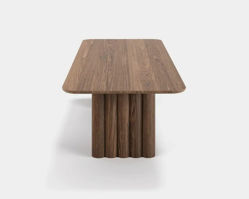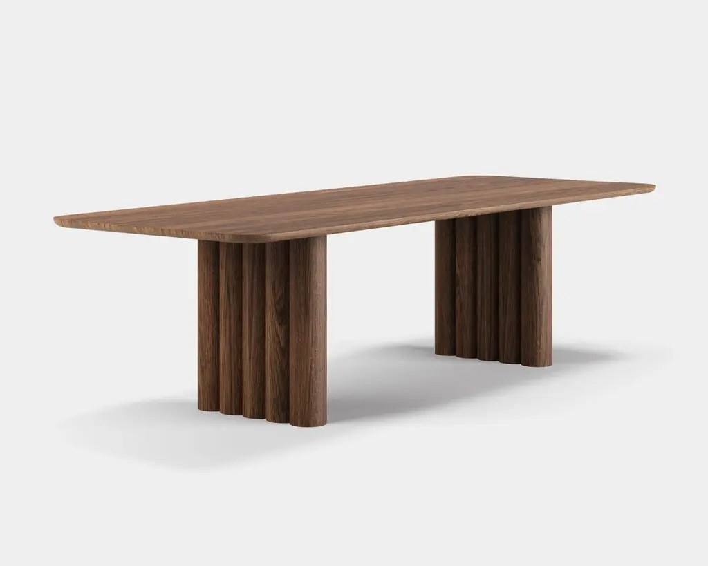 PLUSH dining table, rectangular table top, 270 cm.Solid wood table top and legs. Handmade in Denmark. Signed by Jacob Plejdrup for DK3Model shown on main picture:RectangularWood: Smoked OakTable's height: 72 cmLegs Thickness: 130 mmTable top Thickness: 30 mmTable's height: 72 or 74 cmTable top’s thickness: 30-40mmLegs width: 130mm or 150mmTable top dimensions:– 200 x 100 cm– 240 x 100 cm– 270 x 100 cm– 300 x 100 cm– 340 x 100 cm– 370 x 100 cm– 400 x 100 cmWood:– Light oak– Smoked oak– WalnutPrice may vary according to the wood type and size. --Plush tableDesign by Jacob Plejdrup, 2023.dk3 was among the first brands to introduce the plank table to the Scandinavian market back in 2009, and with the aim to take this design heritage to the next level, dk3 founder Jacob Plejdrup has developed the anniversary table Ten table in cooperation with Danish designer Christian Troels. The designs of Christian Troels are characterized by a great level of details and craftsmanship accuracy, which, in the Ten table, is perfectly merged with Jacob Plejdrup's basic ideas on large dining tables, such as highlighting the natural beauty of wood in a minimalistic way.