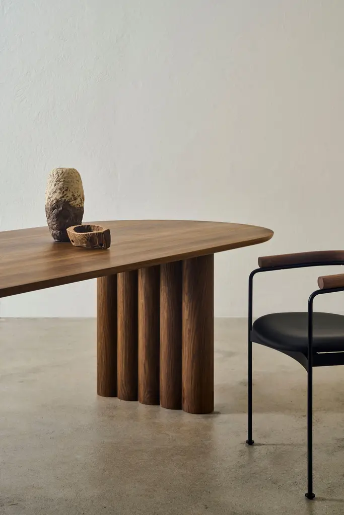 PLUSH dining table, oval, 370 cm.Solid wood table top and legs. Handmade in Denmark. Signed by Jacob Plejdrup for DK3Model shown on main picture:Shape: OvalWood: Smoked OakDimensions: 370 cmTable's height: 72 cmTable's height: 72 or 74 cmTable top’s thickness: 40mmLegs width: 150mmTable top dimensions:– 200 x 100 cm– 240 x 100 cm– 270 x 100 cm– 300 x 100 cm– 340 x 100 cm– 370 x 100 cm– 400 x 100 cmWood:– Light oak– Smoked oak– WalnutPrice may vary according to the wood type and Size. --Plush tableDesign by Jacob Plejdrup, 2023.dk3 was among the first brands to introduce the plank table to the Scandinavian market back in 2009, and with the aim to take this design heritage to the next level, dk3 founder Jacob Plejdrup has developed the anniversary table Ten table in cooperation with Danish designer Christian Troels. The designs of Christian Troels are characterized by a great level of details and craftsmanship accuracy, which, in the Ten table, is perfectly merged with Jacob Plejdrup's basic ideas on large dining tables, such as highlighting the natural beauty of wood in a minimalistic way.