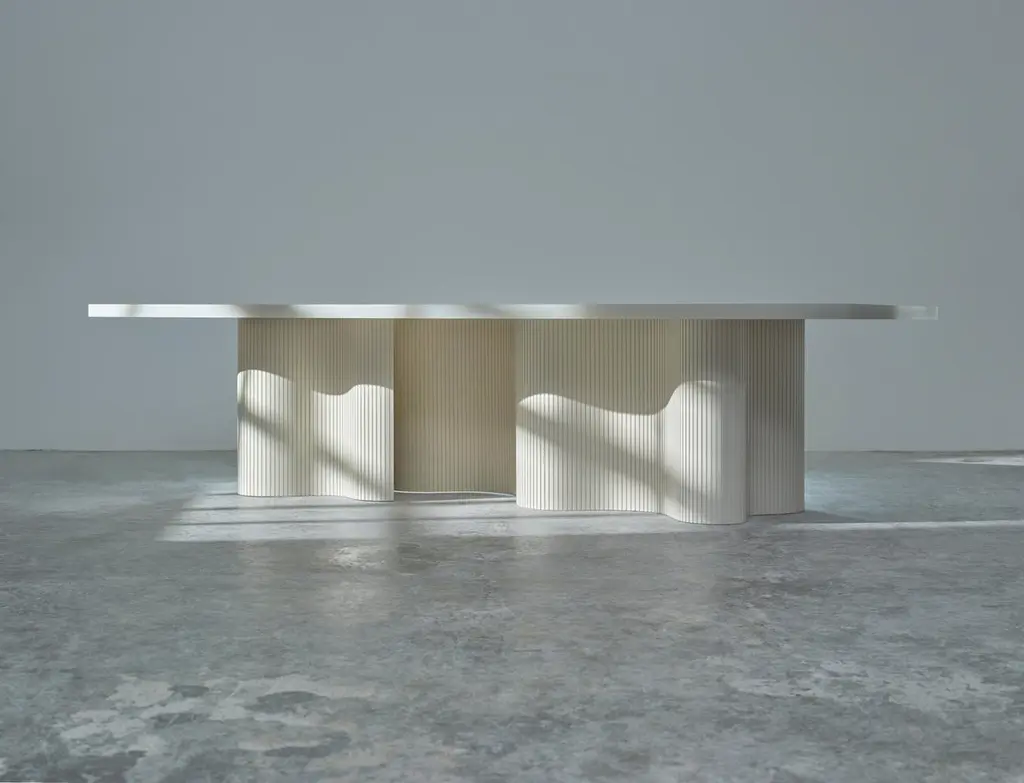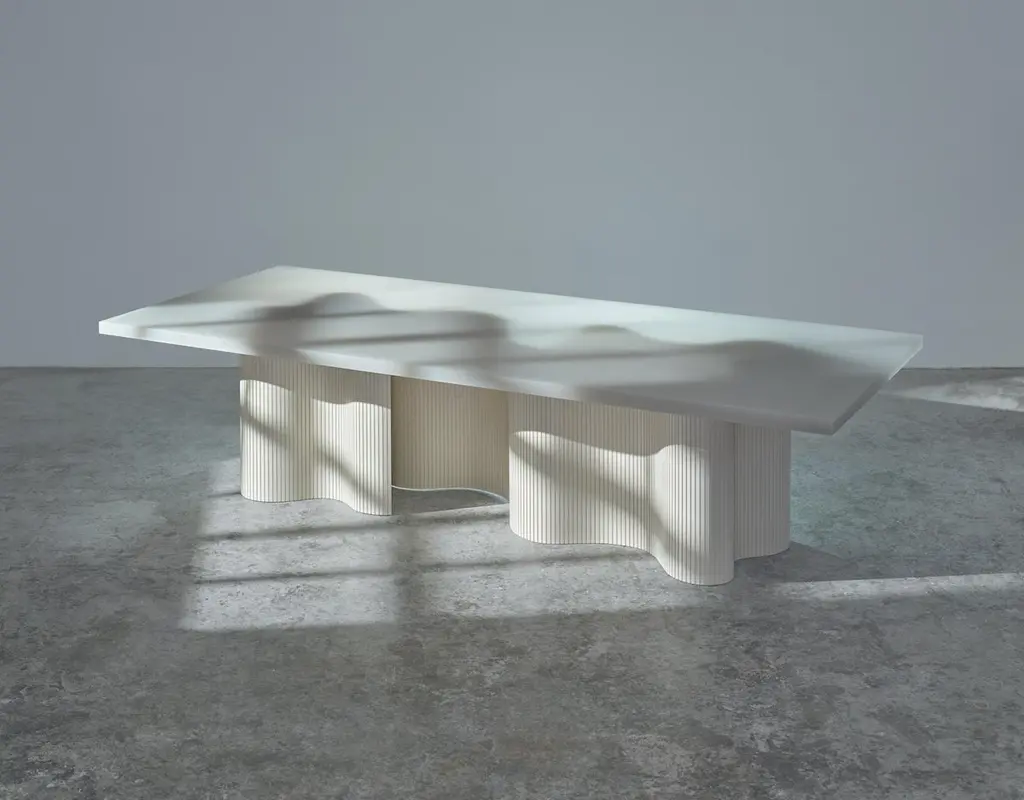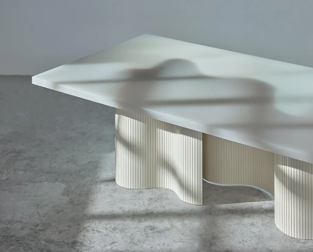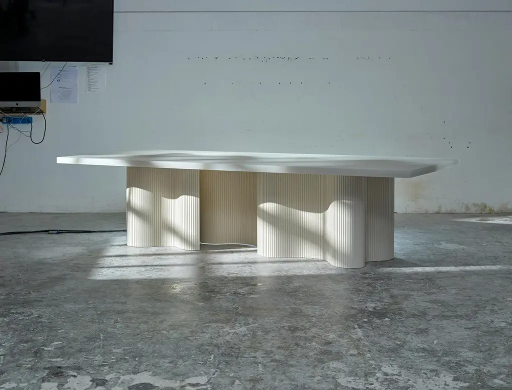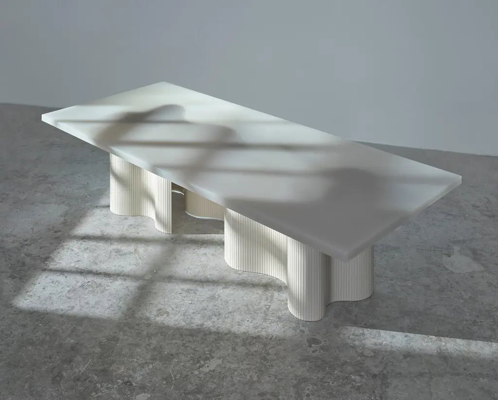 Contemporary Dining Table, White Matte Polished Resin, By Erik Olovsson