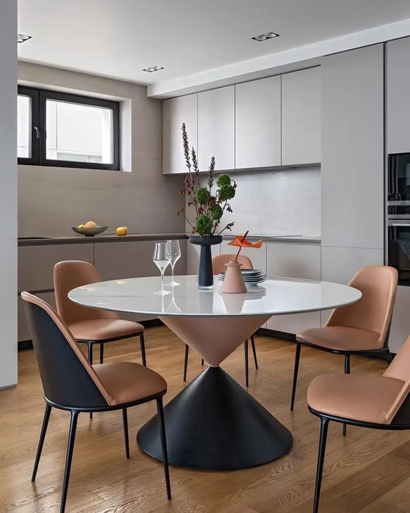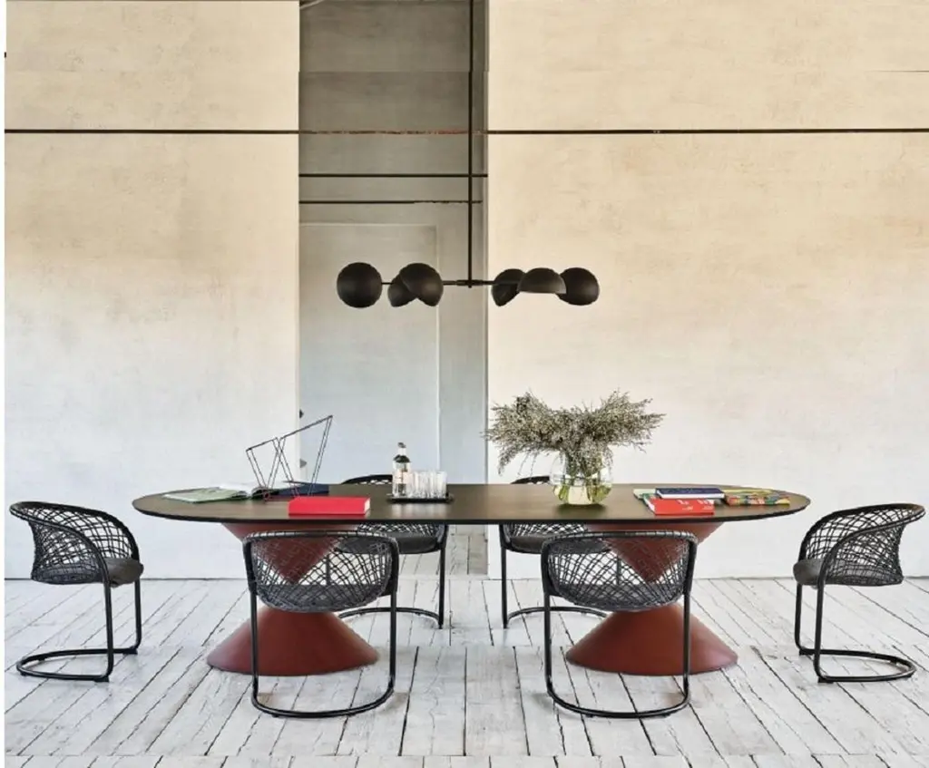 Contemporary Dining Table With Two Colored Metal Base