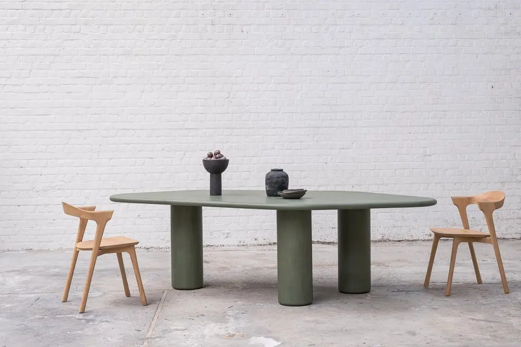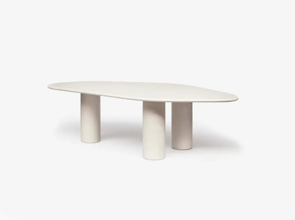 The Vézère collection pays homage to the French river, with its gentle curves and fluid forms. Organic and flowing lines. The shape of the tables was created from pebbles found in the river. Starting from a base of plywood, layers of Mortex© are added to create the table. Mortex© is a decorative technique based on lime, acrylic and pigment. This technique is added manually which gives an imperfectly perfect result and gives each table a unique appearance with color nuances, imperfections and small irregularities. These form the character of the product and the technique. The appearance of the furniture is partly determined by the degree of polishing and the final finishing layer. Each piece of furniture or object is completely unique and handmade in our own workshop. Matt finish by means of a water-based PU lacquer. The colors are manually composed of natural pigments.Only for indoor use. Material: Ply wood, Mortex© (decorative technique based on lime and pigment) Armand & Francine (A&F) is a creative duo comprised of Gert Hellebaut and Cathy Poppe, based in Ghent, Belgium. Driven by a desire for creative freedom, they embarked on a journey as self-taught designers which led them to establish their studio where they handcraft solid, unique furniture and objects for interiors. A&F combine traditional craftsmanship with organic and flowing lines, reflecting their love for textures, materials, asymmetry, and imperfect beauty. Cathy's creative instincts and Gert's technical skills complement each other, resulting in their distinctive and refined designs. A&F believes that furniture should not only be visually appealing but also serve as functional and emotional objects that can be cherished for generations. The design process of A&F involves experimentation and refinement, always researching new techniques, structures and materials. Armand & Francine believe in a local approach and prioritize quality and craftmanship, personally handling every aspect of the production process in favor of maintaining control over the final product.