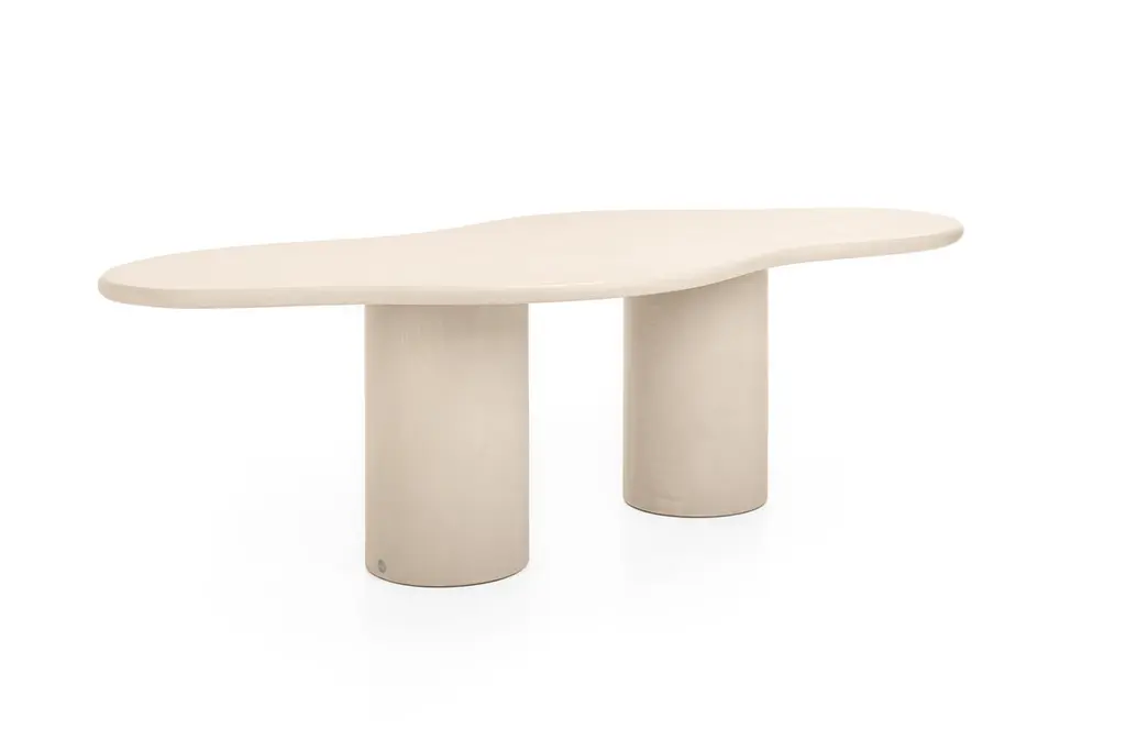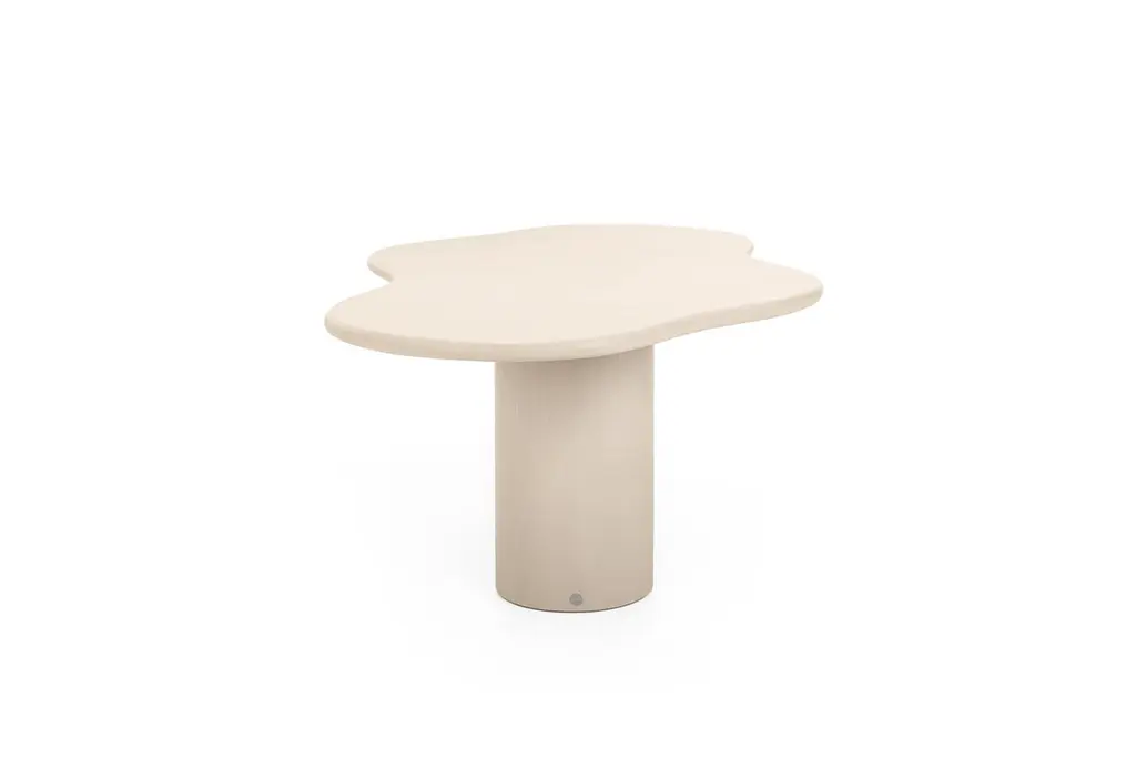 A contemporary Belgian design, handcrafted in natural plaster with a textured, earthy character. The surface is stain-resistant, easy to maintain, and pleasantly soft to the touch, unlike the cold feel of natural stone.Standard version for indoor use. Outdoor finish available on demand. (+20%).Latin adjective “fluentem” (p.pr. fluō /ˈflu.o/): flowingEach piece is built on a wooden base and finished by hand with multiple layers of Mortex®, a premium plaster known for its durability in demanding applications such as bathrooms, stairs, and swimming pools. Mortex contains no epoxy or polyurethane resins.The plaster is applied using the a fresco method: Each layer is applied before the previous one has fully set, creating a perfect bond and a rich, seamless surface. The result is a tactile object with depth, warmth, and individuality. Subtle irregularities, natural shades, and variations are the signature of the craftsman, ensuring that no two tables are ever the same.Thanks to its understated, versatile character, the table integrates beautifully into a wide range of interior styles: from wabi-sabi and japandi to brutalism, minimalism, or contemporary design.Available in more than 80 colours, with endless options in size and shape. Samples are recommended, as slight variations in tone and texture are inherent to the artisanal process and the living nature of the material.Colour shown: BM32.5 Camel Ultra LightDisclaimer:The colours shown may differ from the colours of the applied product. We recommend ordering a sample. Please keep in mind that differing effects and nuances are to be expected when you compare the finished product to the provided sample. This is the result of the application process and the characteristics of the material. Due to the handmade character dimensions may vary by up to 1.5 cm.The customer is responsible for ensuring that products are used, handled, and maintained strictly in accordance with BB UNITED BV’s instructions and guidelines, provided with the product and/or available on demand. Warranty and liability shall not apply in cases of improper use, lack of maintenance, exposure to unsuitable environments, or use of cleaning products or methods not approved by BB UNITED BV.While certain products are treated and intended for outdoor use, BB UNITED BV cannot guarantee that products will remain unaffected under all climatic or environmental conditions. The customer is responsible for ensuring suitable placement, protection, and maintenance adapted to local weather circumstances. BB UNITED BV shall not be liable for weather-related damage or natural wear and tear.BB UNITED BV shall under no circumstances be liable for indirect, consequential, or incidental damages, including but not limited to shipping costs, customs duties, import taxes, installation costs, third-party claims, or loss of profit.
