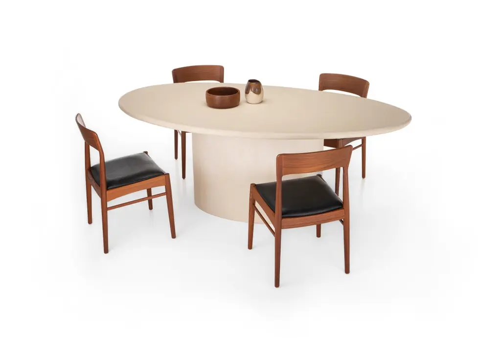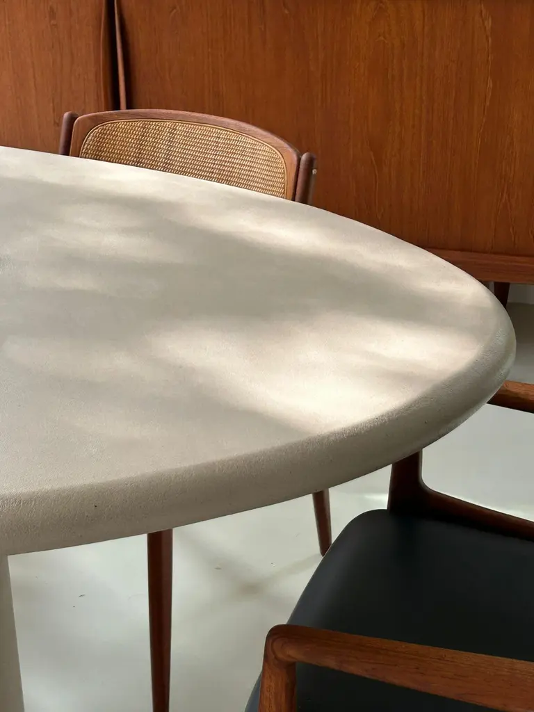 A contemporary Belgian design, handcrafted in natural plaster with a textured, earthy character. The surface is stain-resistant, easy to maintain, and pleasantly soft to the touch, unlike the cold feel of natural stone.Standard version for indoor use. Outdoor finish available on demand. (+20%).The name of the Sami collection is a combination of the Dutch word 'samen' (together) and the Japanese word 'Sabi' (rustic patina).Each piece is built on a wooden base and finished by hand with multiple layers of Mortex®, a premium plaster known for its durability in demanding applications such as bathrooms, stairs, and swimming pools. Mortex contains no epoxy or polyurethane resins.The plaster is applied using the a fresco method: Each layer is applied before the previous one has fully set, creating a perfect bond and a rich, seamless surface. The result is a tactile object with depth, warmth, and individuality. Subtle irregularities, natural shades, and variations are the signature of the craftsman, ensuring that no two tables are ever the same.Thanks to its understated, versatile character, the table integrates beautifully into a wide range of interior styles: from wabi-sabi and japandi to brutalism, minimalism, or contemporary design.Available in more than 80 colours, with endless options in size and shape. Samples are recommended, as slight variations in tone and texture are inherent to the artisanal process and the living nature of the material.Colour shown: BM32 Camel LightDisclaimer:The colours shown may differ from the colours of the applied product. We recommend ordering a sample. Please keep in mind that differing effects and nuances are to be expected when you compare the finished product to the provided sample. This is the result of the application process and the characteristics of the material. Due to the handmade character dimensions may vary by up to 1.5 cm.The customer is responsible for ensuring that products are used, handled, and maintained strictly in accordance with BB UNITED BV’s instructions and guidelines, provided with the product and/or available on demand. Warranty and liability shall not apply in cases of improper use, lack of maintenance, exposure to unsuitable environments, or use of cleaning products or methods not approved by BB UNITED BV.While certain products are treated and intended for outdoor use, BB UNITED BV cannot guarantee that products will remain unaffected under all climatic or environmental conditions. The customer is responsible for ensuring suitable placement, protection, and maintenance adapted to local weather circumstances. BB UNITED BV shall not be liable for weather-related damage or natural wear and tear.BB UNITED BV shall under no circumstances be liable for indirect, consequential, or incidental damages, including but not limited to shipping costs, customs duties, import taxes, installation costs, third-party claims, or loss of profit.
