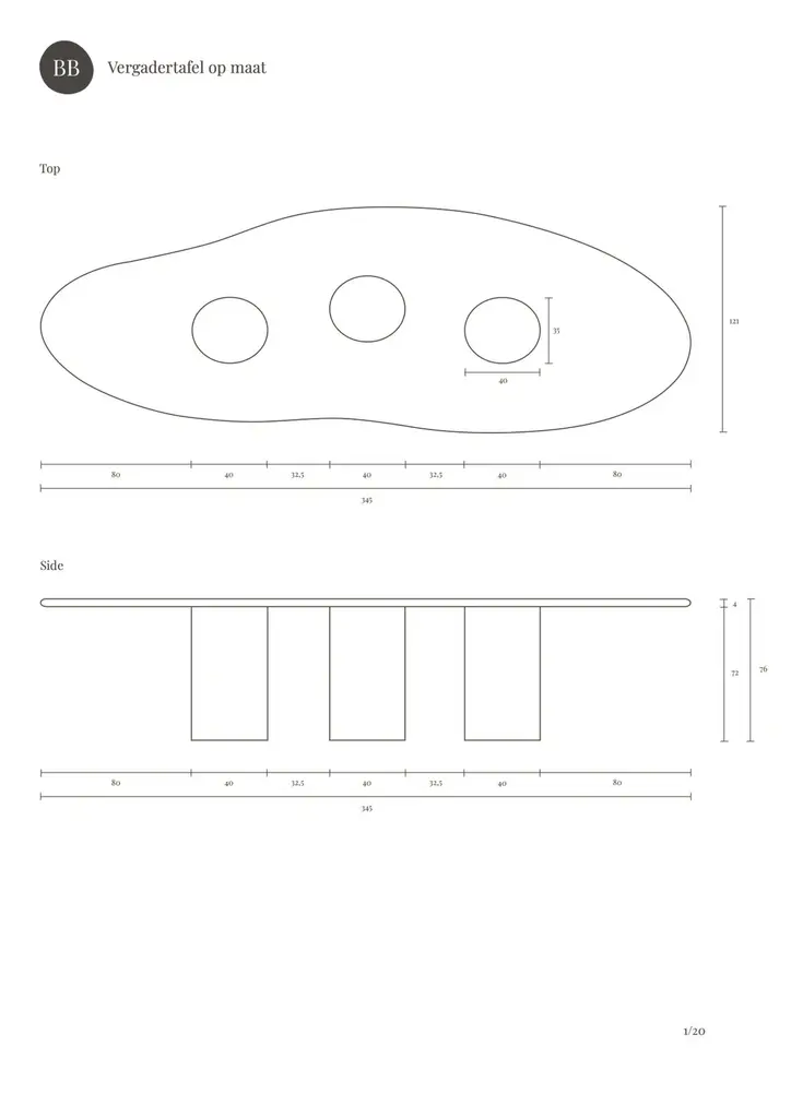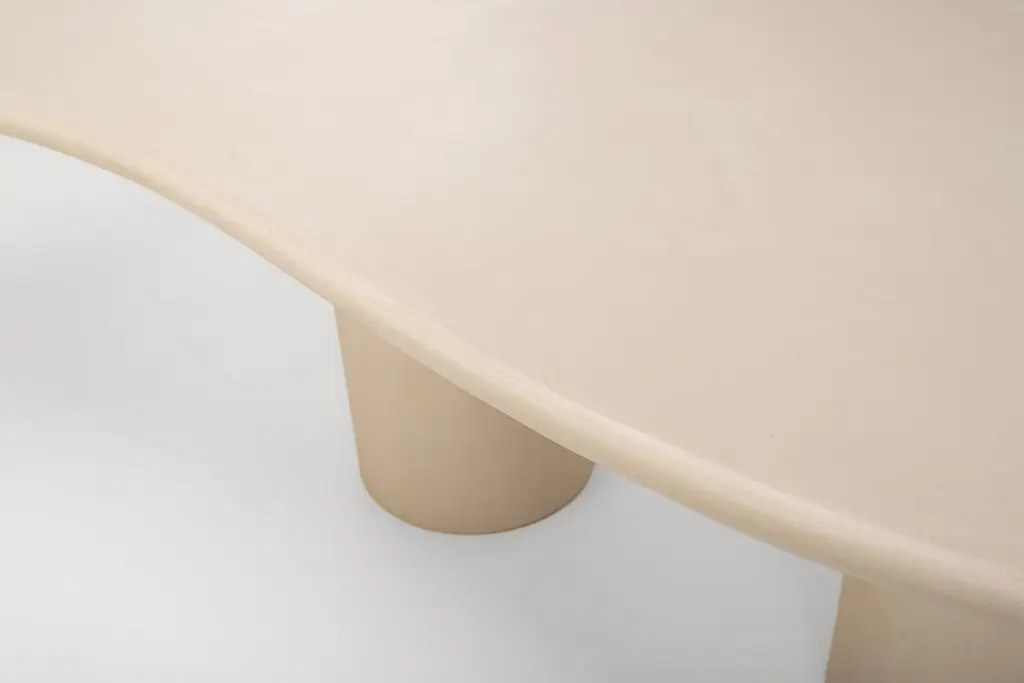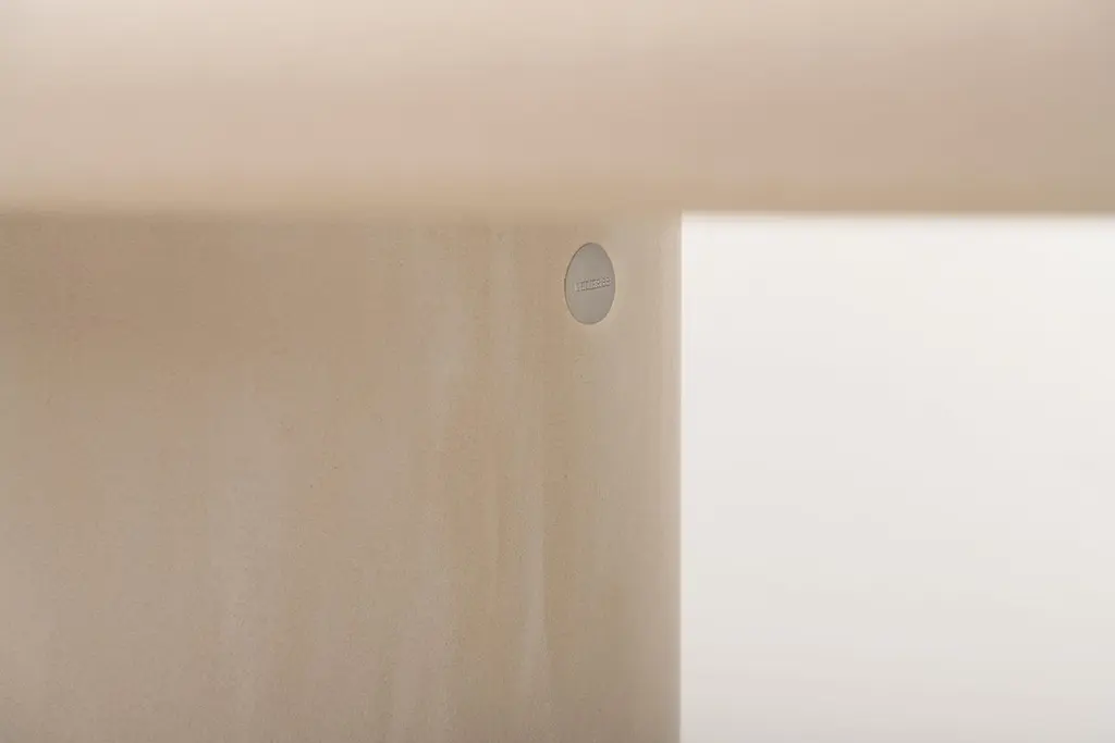 A contemporary Belgian design, handcrafted in natural plaster with a textured, earthy character. The surface is stain-resistant, easy to maintain, and pleasantly soft to the touch, unlike the cold feel of natural stone.Each piece is built on a wooden base and finished by hand with multiple layers of Mortex®, a premium plaster known for its durability in demanding applications such as bathrooms, stairs, and swimming pools. Mortex contains no epoxy or polyurethane resins.The plaster is applied using the a fresco method: Each layer is applied before the previous one has fully set, creating a perfect bond and a rich, seamless surface. The result is a tactile object with depth, warmth, and individuality. Subtle irregularities, natural shades, and variations are the signature of the craftsman, ensuring that no two pieces are ever the same.Thanks to its understated, versatile character, the table integrates beautifully into a wide range of interior styles: from wabi-sabi and japandi to brutalism, minimalism, or contemporary design.Available in more than 80 colours, with endless options in size and shape. Samples are recommended, as slight variations in tone and texture are inherent to the artisanal process and the living nature of the material.Colour shown: BM32.5 Camel Ultra LightDisclaimer:The colours shown may differ from the colours of the applied product. We recommend ordering a sample. Please keep in mind that differing effects and nuances are to be expected when you compare the finished product to the provided sample. This is the result of the application process and the characteristics of the material. Due to the handmade character dimensions may vary by up to 1.5 cm.The customer is responsible for ensuring that products are used, handled, and maintained strictly in accordance with BB UNITED BV’s instructions and guidelines, provided with the product and/or available on demand. Warranty and liability shall not apply in cases of improper use, lack of maintenance, exposure to unsuitable environments, or use of cleaning products or methods not approved by BB UNITED BV.While certain products are treated and intended for outdoor use, BB UNITED BV cannot guarantee that products will remain unaffected under all climatic or environmental conditions. The customer is responsible for ensuring suitable placement, protection, and maintenance adapted to local weather circumstances. BB UNITED BV shall not be liable for weather-related damage or natural wear and tear.BB UNITED BV shall under no circumstances be liable for indirect, consequential, or incidental damages, including but not limited to shipping costs, customs duties, import taxes, installation costs, third-party claims, or loss of profit.