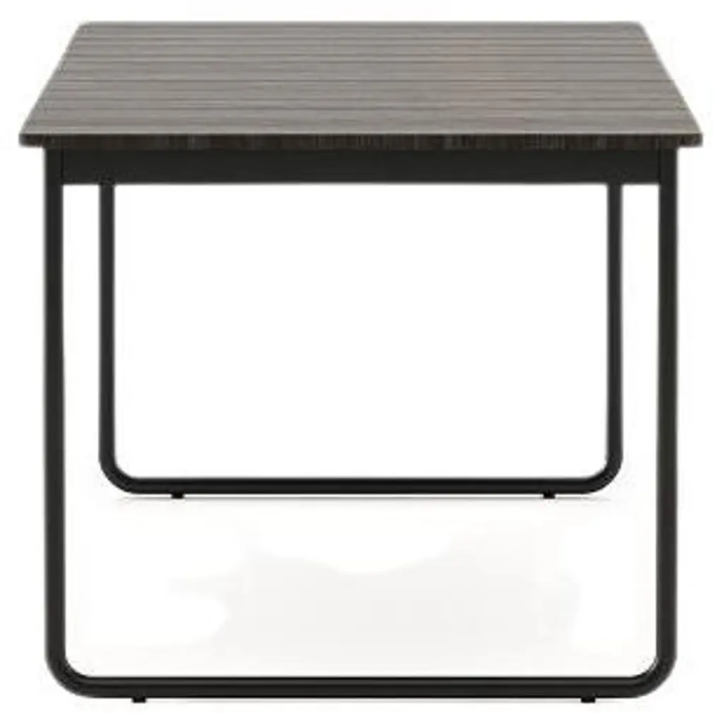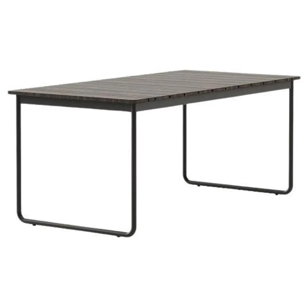 Contemporary Outdoor Dining Table In Dark Bamboo Wood & Metal Base