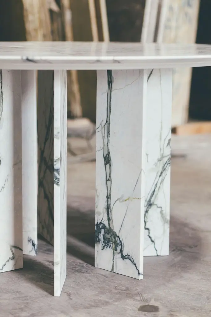 Ellipse 01.6 c is a spacious table. Optically round, but still a true part of the ellipse family. The setting of the frame perfectly defines each seating. The vertical table legs are not only functional, the odd number of legs also results in an interesting view along each sight. Made of carefully chosen marble. This table comes in a limited edition of 8 pieces.Note: The table in stock is provided with double legs (as shown in the first 3 pictures).Barh is a high-end furniture and objects brand, known to combine the finest materials, design details and fine craftsmanship in unique creations, build for those who want to grant themselves something unique, extraordinary. Core values are subtlety and elegance as pinnacles of beauty. Contemporary, distinguished and timeless. Distinct, unique pieces made with the finer materials and crafted one step beyond perfection. Guaranteeing an investment in exclusivity is exactly what will be supplied, a feeling of connected individuality and uniqueness.barh collectibles policy:Objects made under the barh collectible label come with the guarantee of being a limited edition. The new owner who is acquiring the object from barh, or the intermediate selling party, has the assurance that barh will only produce a maximum of 8 numbered pieces of this particular object in this specific setting (combination of used materials, dimensions, functionality and design). Whether or not the total maximum of 8 pieces is produced and commercialised is at barh’s discretion only, just as the when and how. Selling parties need to check availability at all times, before committing to a sale. barh’s limited edition objects will consist out of a maximum of 8 numbered objects (LE 1/8 to 8/8), up to 2 designer proofs made for finetuning (DP 1/2 to 2/2) and up to 1 workshop proofs for showcase and/or reference (WP 1). Whether DP’s and/or WP’s are produced and whether they are kept are at barh’s discretion only. The pricing of barh objects will evolve as follows: •1/8, 2/8, 3/8, 4/8 are at normal list price •5/8 = list price + 10%•6/8 = list price + 20%•7/8 = list price + 40%•8/8 = list price + 60 %In order to visualize and communicate on our integrity, barh will keep a record updated at all times of all collectible object sold. Every object will be numbered and will be foreseen of an official document detailing its authenticity. Reproductions, in case they should be encountered, are not original works of furniture design. Unless explicitly mentioned, no other company nor person will have the right to (re)produce barh designs/objects under any shape or form as they will become subject to judicial claims. Enjoy your unique artefact. Don't hesitate to contact with further questions.
