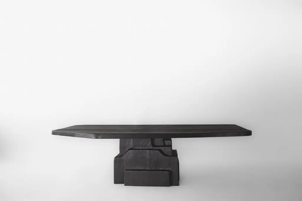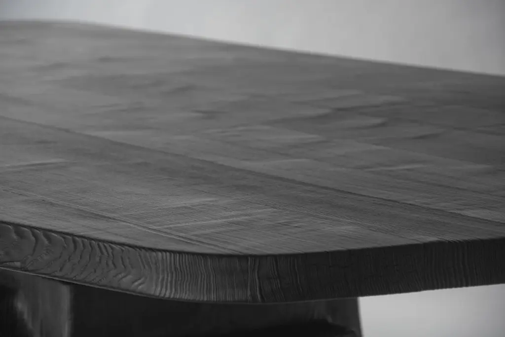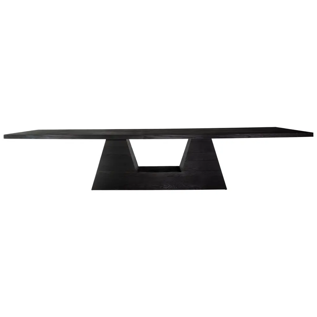 PATHOS Dining Table by German contemporary design studio Eichkorn. Material: Burnt Ash WoodStandard size: H.75 x 280 x 180 cm - Customizations are possibleMade from burnt ash wood, our „PATHOS“ dining table impresses with its solid appearance. Finished with a brushed surface, it blends in perfectly with its surroundings.About the designer: Eichkorn stands for sculptural and aesthetic furniture made from the finest Materials with excellent Craftsmanship.Driven by the process of creation, acting out of love for quality and inspired by the greatest of all artists - nature -we’re giving art a practical purpose.In our almost 100 years old workshop innovative ideas are combined with traditional spirit. Each of our craftsmen practices his profession very passionately - this creates unity in terms of our quality standard: perfection.We are proud to be able to work with such experienced, exceptional craftsmen. As a manufactory we are completely free in our production. This allows us to respond flexibly to our customers' wishes."We live for creating sculptural and aesthetic furniture. Unique materials and a love for authentic craftsmanship bring each of our works to life. That's the magic we're all about."