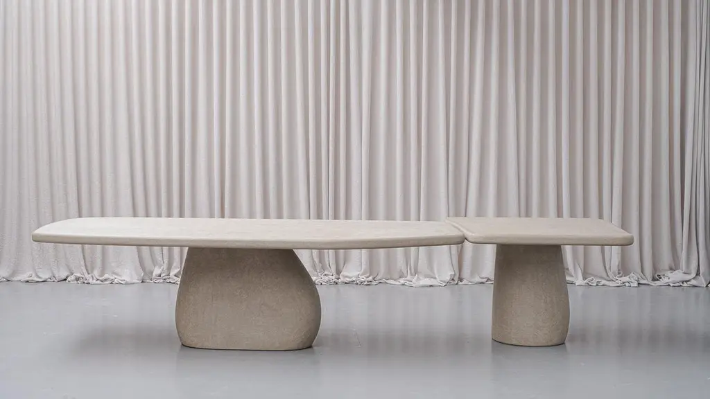 Starting from a base of plywood, layers of Mortex© are added to create the table. Mortex© is a decorative technique based on lime, acrylic and pigment. This technique is added manually which gives an imperfectly perfect result and gives each table a unique appearance with color nuances, imperfections and small irregularities. These form the character of the product and the technique. The appearance of the furniture is partly determined by the degree of polishing and the final finishing layer. Each piece of furniture or object is completely unique and handmade in our own workshop. Matt finish by means of a water-based PU lacquer. The colors are manually composed of natural pigments.Only for indoor use. Material: Ply wood, Mortex© (decorative technique based on lime and pigment) Armand & Francine (A&F) is a creative duo comprised of Gert Hellebaut and Cathy Poppe, based in Ghent, Belgium. Driven by a desire for creative freedom, they embarked on a journey as self-taught designers which led them to establish their studio where they handcraft solid, unique furniture and objects for interiors. A&F combine traditional craftsmanship with organic and flowing lines, reflecting their love for textures, materials, asymmetry, and imperfect beauty. Cathy's creative instincts and Gert's technical skills complement each other, resulting in their distinctive and refined designs. A&F believes that furniture should not only be visually appealing but also serve as functional and emotional objects that can be cherished for generations. The design process of A&F involves experimentation and refinement, always researching new techniques, structures and materials. Armand & Francine believe in a local approach and prioritize quality and craftmanship, personally handling every aspect of the production process in favor of maintaining control over the final product.