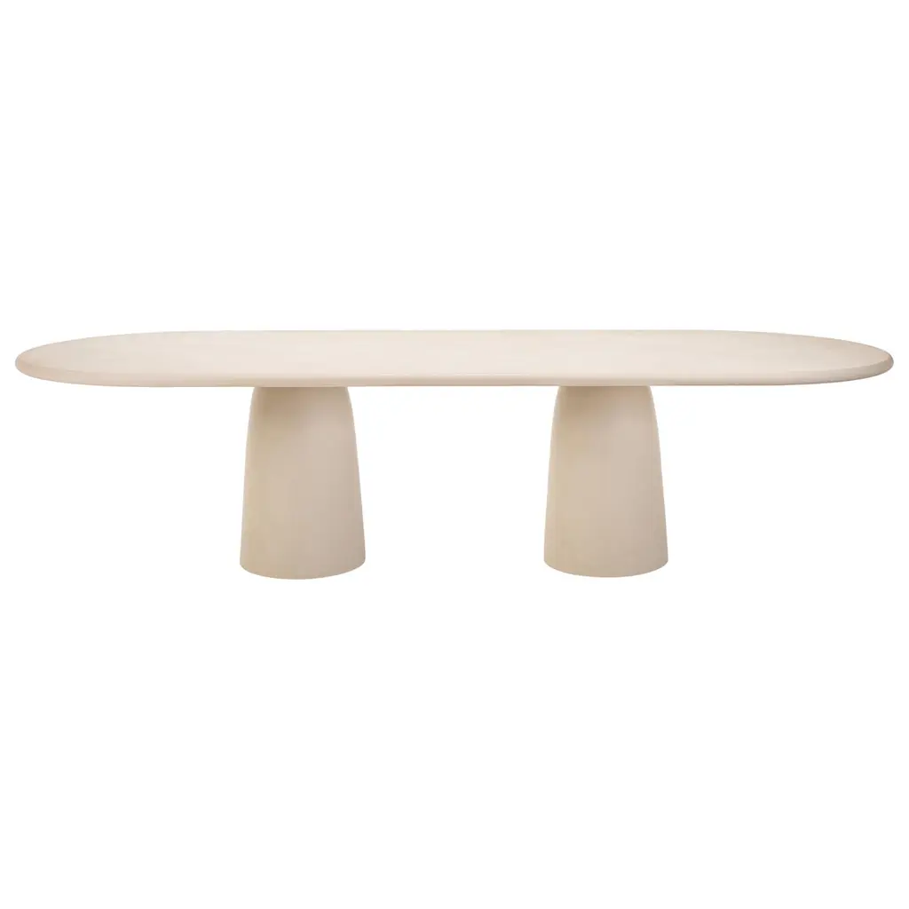 A contemporary Belgian design, handcrafted in natural plaster with a textured, earthy character. The surface is stain-resistant, easy to maintain, and pleasantly soft to the touch, unlike the cold feel of natural stone. Solid European Oak base. Indoor use. Inspired by the timeless menhir form, upright stones placed by prehistoric people in Celtic regions 4000-6000 years ago, the table carries a sense of monumentality and quiet strength.Each piece is built on a wooden base and finished by hand with multiple layers of Mortex®, a premium plaster known for its durability in demanding applications such as bathrooms, stairs, and swimming pools. Mortex contains no epoxy or polyurethane resins.The plaster is applied using the a fresco method: Each layer is applied before the previous one has fully set, creating a perfect bond and a rich, seamless surface. The result is a tactile object with depth, warmth, and individuality. Subtle irregularities, natural shades, and variations are the signature of the craftsman, ensuring that no two tables are ever the same.Thanks to its understated, versatile character, the Menhir Dining Table integrates beautifully into a wide range of interior styles: from wabi-sabi and japandi to brutalism, minimalism, or contemporary design.Available in more than 80 colours, with endless options in size and shape. Samples are recommended, as slight variations in tone and texture are inherent to the artisanal process and the living nature of the material.Colour shown: BM32.5 Camel Ultra LightDisclaimer:The colours shown may differ from the colours of the applied product. We recommend ordering a sample. Please keep in mind that differing effects and nuances are to be expected when you compare the finished product to the provided sample. This is the result of the application process and the characteristics of the material. Due to the handmade character dimensions may vary by up to 1.5 cm.The customer is responsible for ensuring that products are used, handled, and maintained strictly in accordance with BB UNITED BV’s instructions and guidelines, provided with the product and/or available on demand. Warranty and liability shall not apply in cases of improper use, lack of maintenance, exposure to unsuitable environments, or use of cleaning products or methods not approved by BB UNITED BV.While certain products are treated and intended for outdoor use, BB UNITED BV cannot guarantee that products will remain unaffected under all climatic or environmental conditions. The customer is responsible for ensuring suitable placement, protection, and maintenance adapted to local weather circumstances. BB UNITED BV shall not be liable for weather-related damage or natural wear and tear.BB UNITED BV shall under no circumstances be liable for indirect, consequential, or incidental damages, including but not limited to shipping costs, customs duties, import taxes, installation costs, third-party claims, or loss of profit.