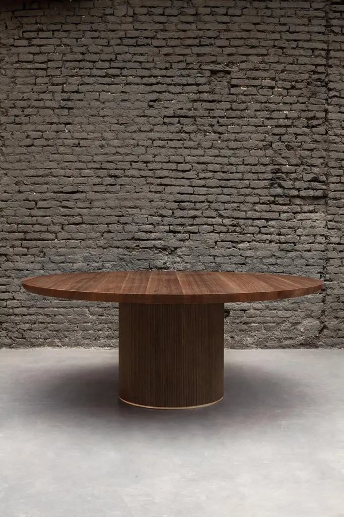 The QD05 dining table top is made of walnut wood with an oak wood base with beautiful details made in brass. Its elegant simplicity makes it adaptable to many spaces.Please note that due to the current increase in raw material cost, prices must be checked and confirmed with us before submitting the order.