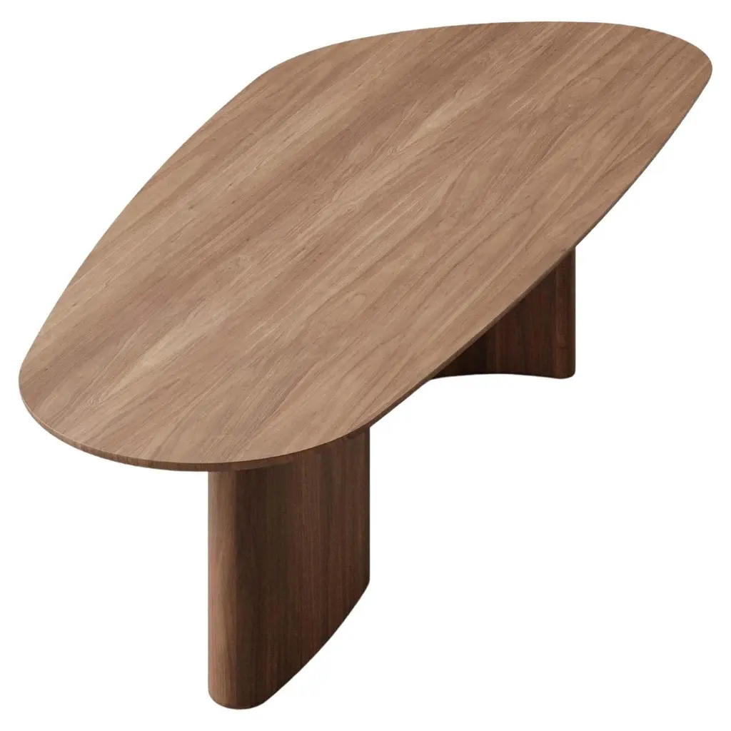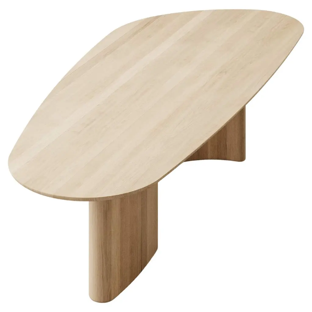 Contemporary Rectangular Dining Table 'Tangent' designed by Anne Boysen for DK3Handmade in DenmarkDimensions:- H.72 x 400 x 110 cm - Big leg: 60 x 24,3 cm / Small leg: 54,8 x 11,8 cm- 3 cm thicknessModel shown on main picture:- Top: Rectangular- Wood: Lacquered Oak- Size: 400 cmWood finishes available:- Oak- Lacquered Oak- Smoked Oak- Walnut- Lacquered WalnutSizes: - 240 cm- 270 cm- 300 cm- 340 cm- 370 cm- 400 cmTop shapes available:- Round- RectangularPossibility of putting an extension leaf of 50 cm----The Tangent Table is created for dk3 by Danish architect and designer Anne Boysen. The table balances form, function and craftsmanship in a design that appears modern and timeless at the same time. It comes in a rectangular and a round version, each interpreting the distinct and original design characterized by its unique base and asymmetrical tabletop.The form is built entirely from tangential arcs that flow seamlessly into each other, creating a sculptural, well-balanced whole with subtle asymmetry. The tabletop is made of wide solid wood sticks running lengthwise, which gives the table a calm and refined look. The curved edge of the tabletop adds a light and almost floating expression to the table.The dk3 collection combines exclusive classic and contemporary furniture from renowned Danish architects and designers such as Jeppe Utzon, Poul Cadovius, and others. The brand is represented by furniture retailers in more than 30 countries around the world.80% of the dk3 collection is crafted in carpentries in Denmark, while the remainder is produced in workshops across Europe.dk3 creates and produces furniture pieces shaped and crafted by true enthusiasts, always with the ambition to unite the finest carpentry traditions with both modern and classic furniture design, blending timeless steel or brass with high-quality wood. The love for organic materials and the uncompromising focus on quality are evident throughout the entire process, from the initial design sketches to manufacturing in the carpentries, where most pieces are hand-finished and surface-treated