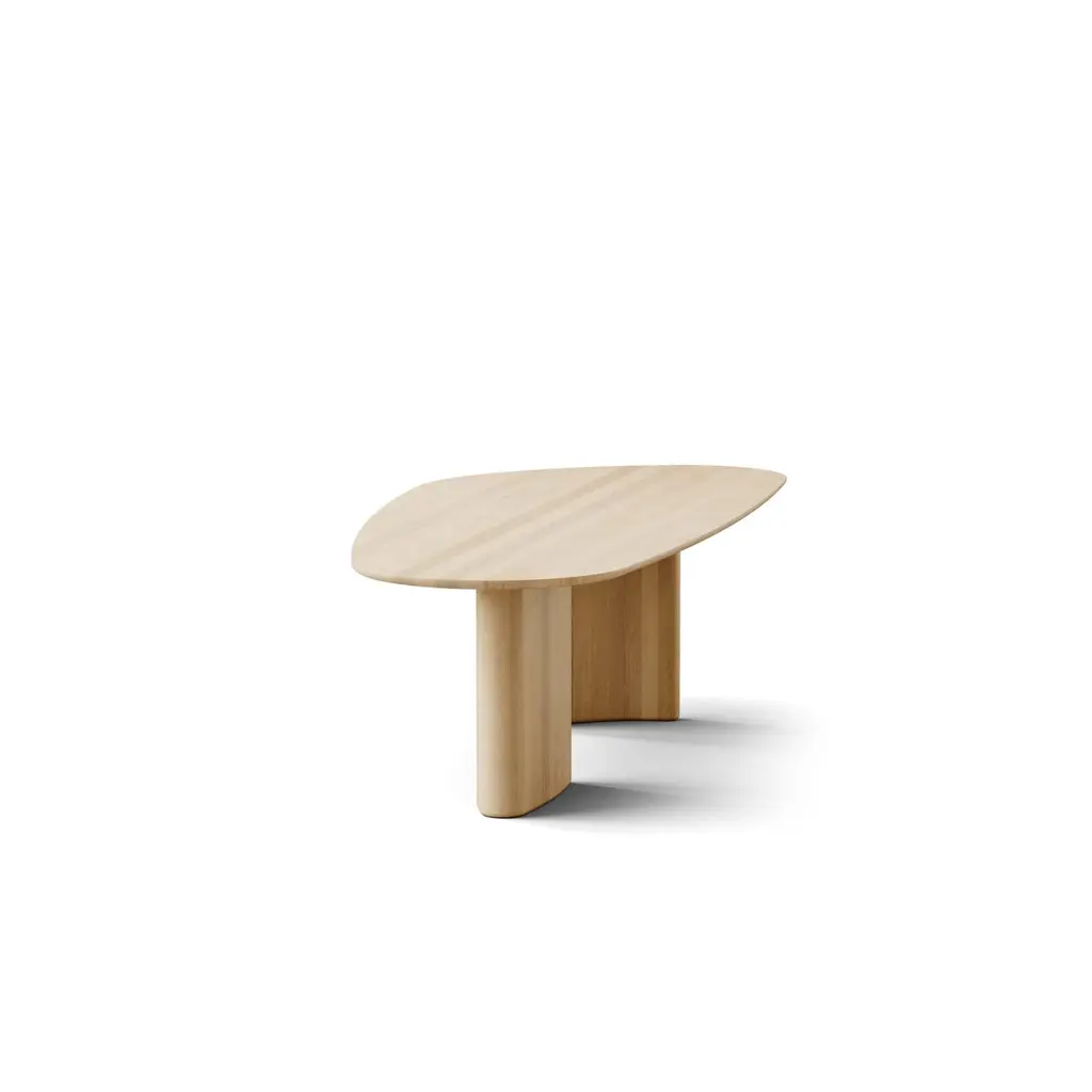 Contemporary Rectangular Dining Table 'Tangent' designed by Anne Boysen for DK3Handmade in DenmarkDimensions:- H.72 x 340 x 110 cm - Big leg: 60 x 24,3 cm / Small leg: 54,8 x 11,8 cm- 3 cm thicknessModel shown on main picture:- Top: Rectangular- Wood: Oak Soap- Size: 340 cmWood finishes available:- Oak- Lacquered Oak- Smoked Oak- Walnut- Lacquered WalnutSizes: - 240 cm- 270 cm- 300 cm- 340 cm- 370 cm- 400 cmTop shapes available:- Round- RectangularPossibility of putting an extension leaf of 50 cm----The Tangent Table is created for dk3 by Danish architect and designer Anne Boysen. The table balances form, function and craftsmanship in a design that appears modern and timeless at the same time. It comes in a rectangular and a round version, each interpreting the distinct and original design characterized by its unique base and asymmetrical tabletop.The form is built entirely from tangential arcs that flow seamlessly into each other, creating a sculptural, well-balanced whole with subtle asymmetry. The tabletop is made of wide solid wood sticks running lengthwise, which gives the table a calm and refined look. The curved edge of the tabletop adds a light and almost floating expression to the table.The dk3 collection combines exclusive classic and contemporary furniture from renowned Danish architects and designers such as Jeppe Utzon, Poul Cadovius, and others. The brand is represented by furniture retailers in more than 30 countries around the world.80% of the dk3 collection is crafted in carpentries in Denmark, while the remainder is produced in workshops across Europe.dk3 creates and produces furniture pieces shaped and crafted by true enthusiasts, always with the ambition to unite the finest carpentry traditions with both modern and classic furniture design, blending timeless steel or brass with high-quality wood. The love for organic materials and the uncompromising focus on quality are evident throughout the entire process, from the initial design sketches to manufacturing in the carpentries, where most pieces are hand-finished and surface-treated