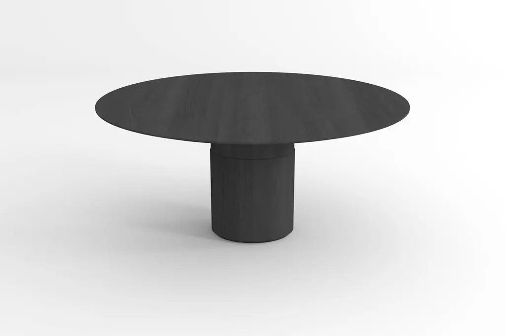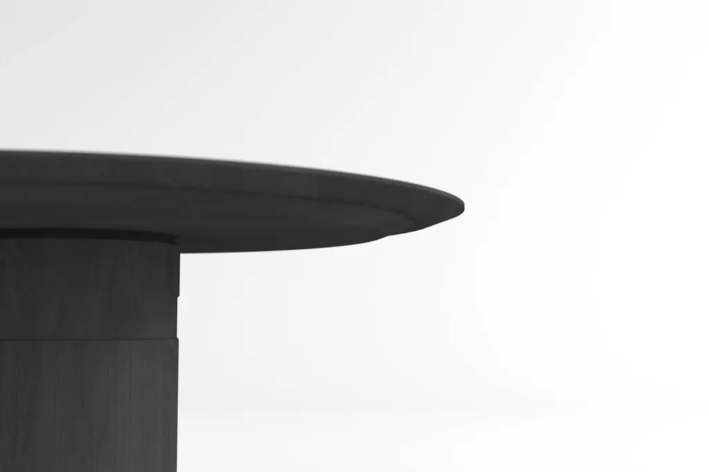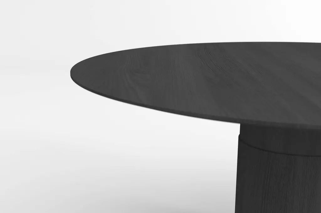 Contemporary Round Dining Table, Black Ash Wood, Central Leg, Belgian Design