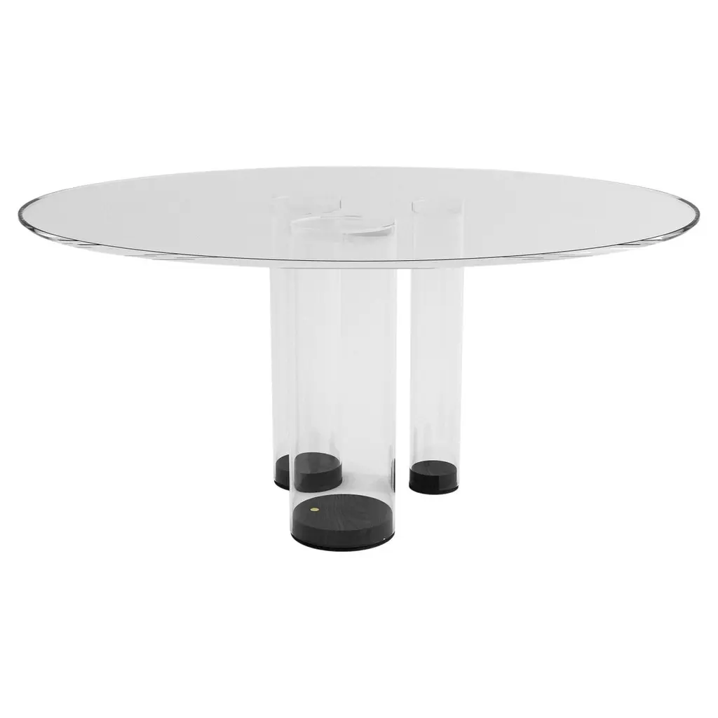 Contemporary Round Dining Table, Black Glass & Black Oak Wood, Belgian Design
