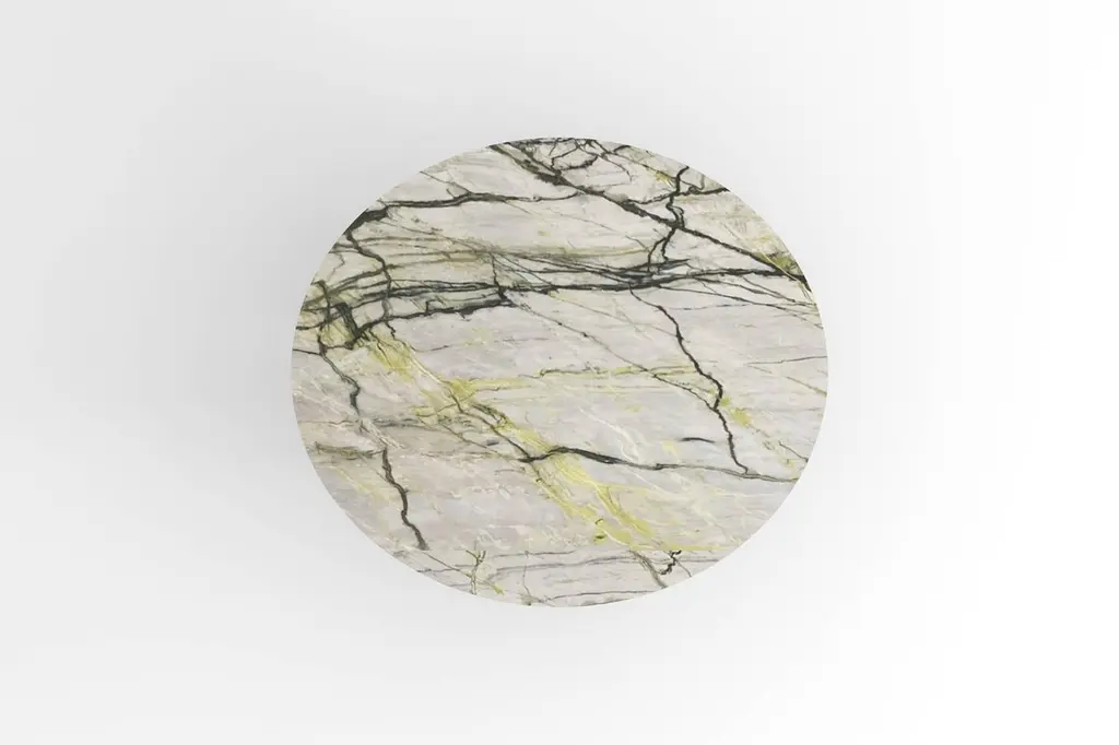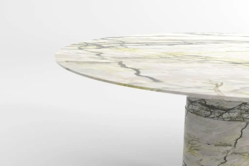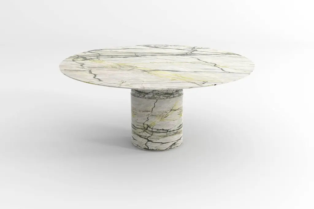 Contemporary Round Dining Table, Calacatta Verde Marble, Central Leg, Belgium