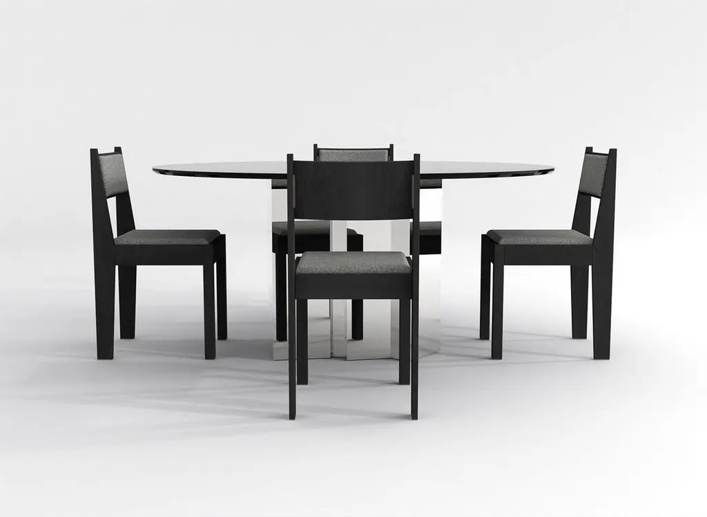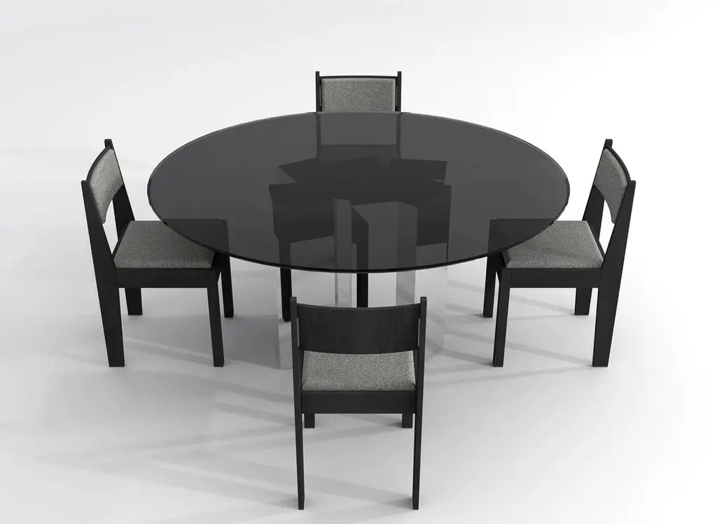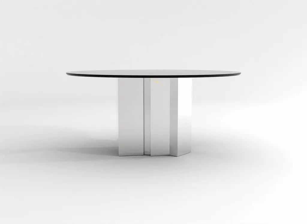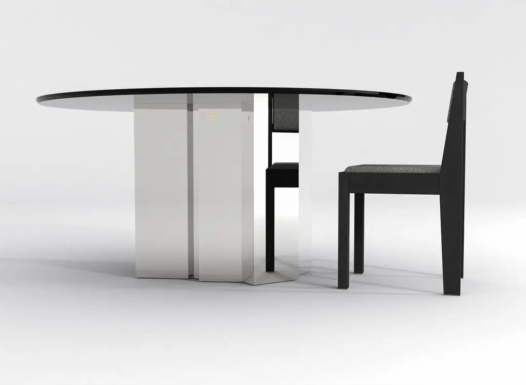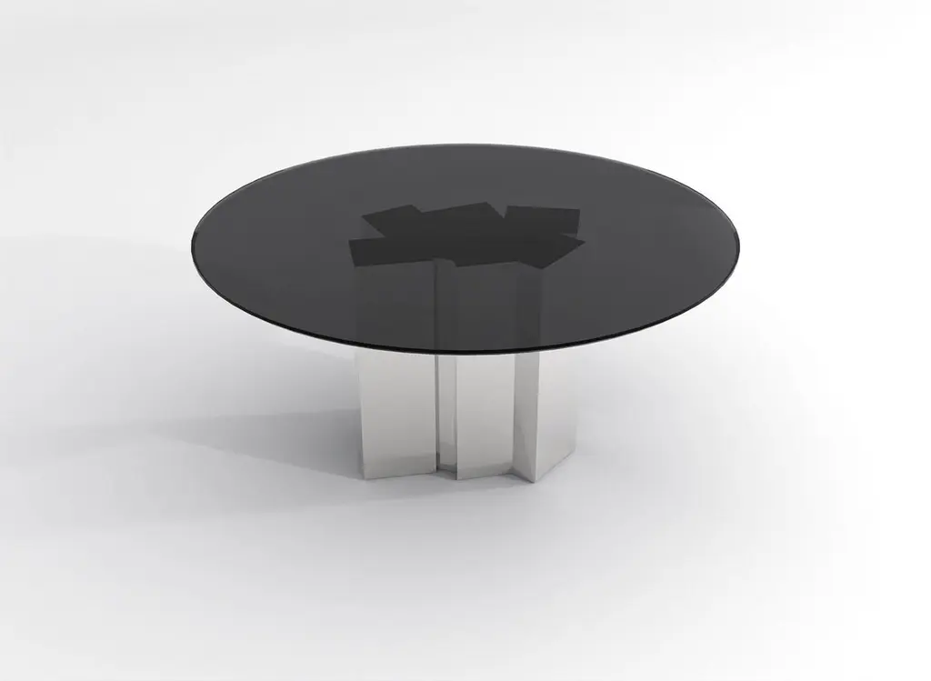 Contemporary Round Dining Table In Black Glass And High Polished Stainless Steel