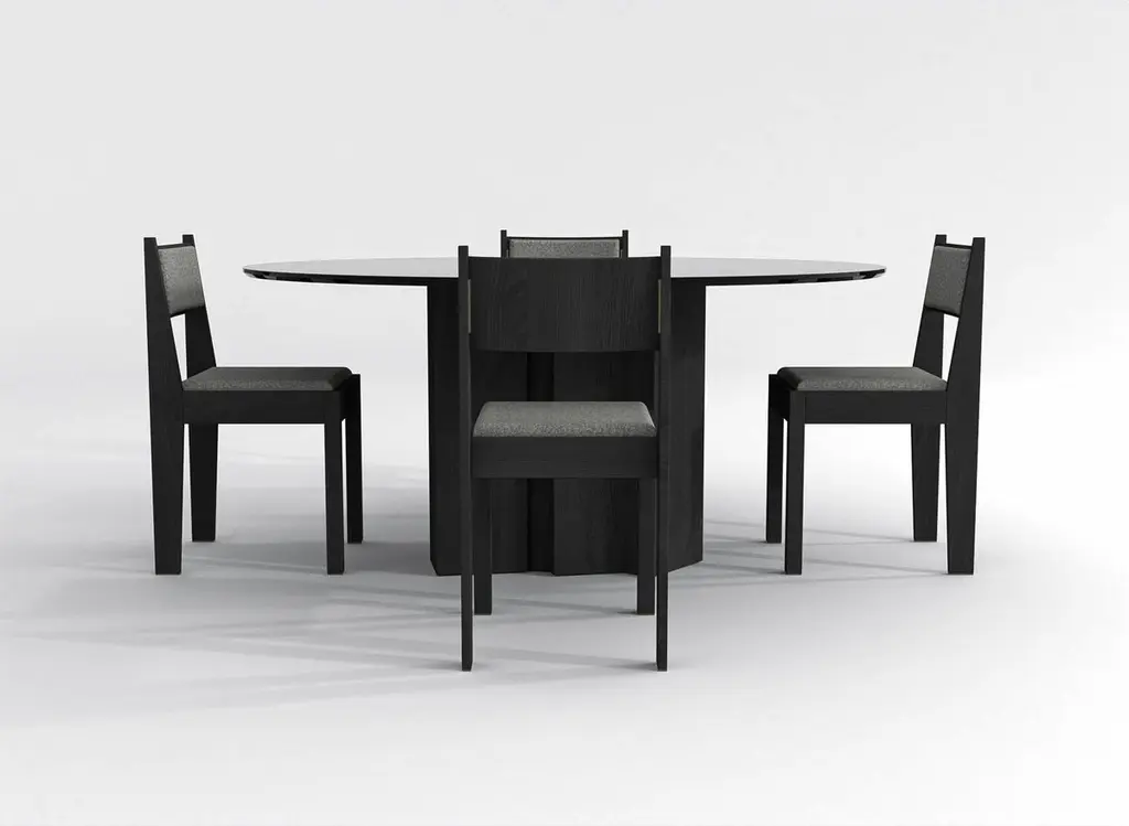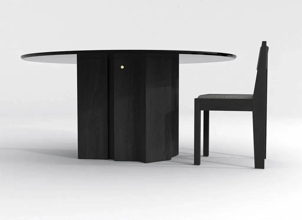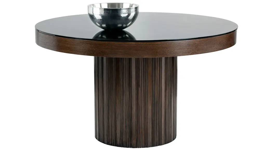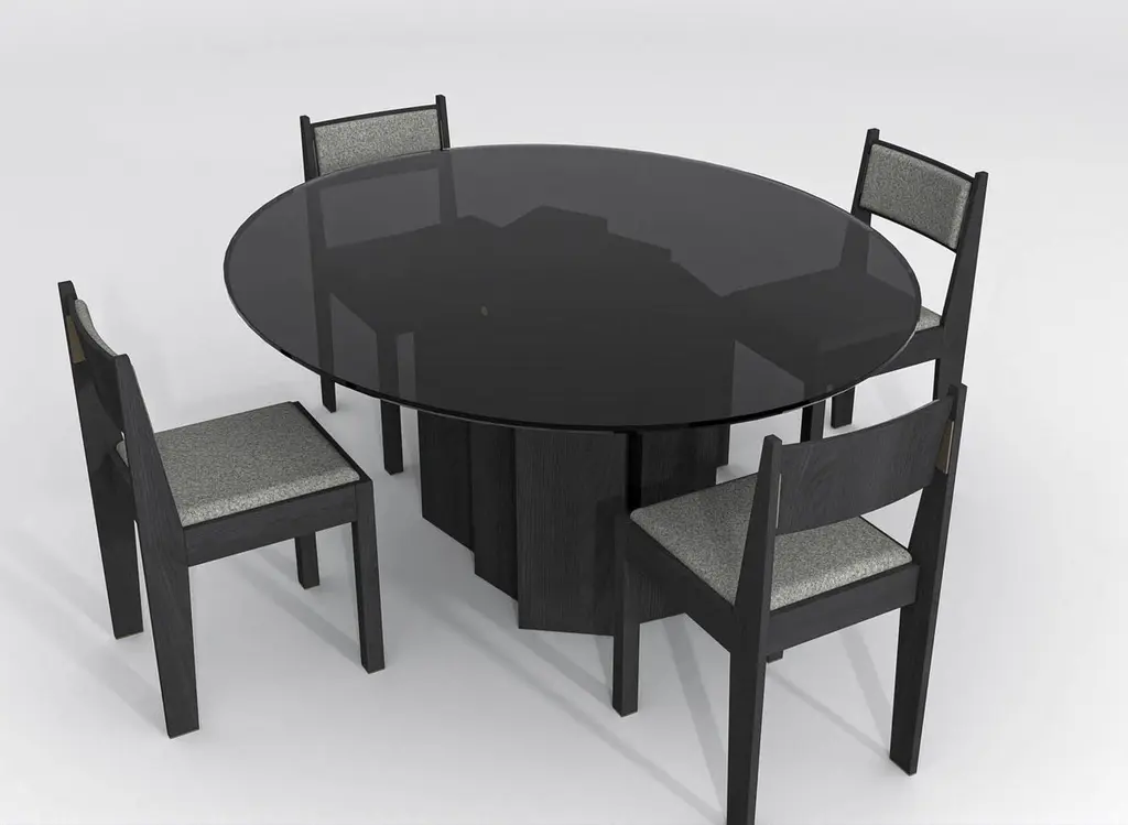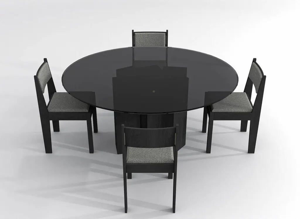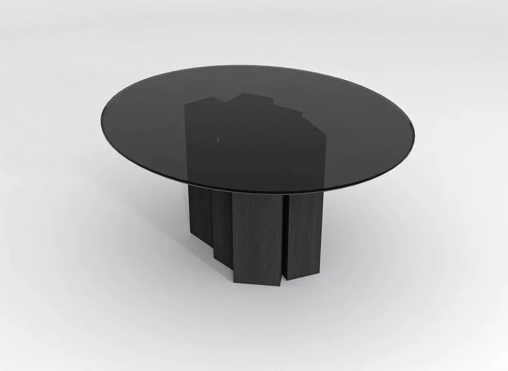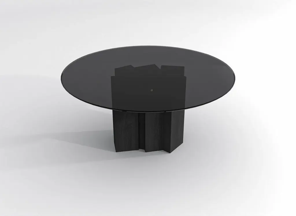Contemporary Round Dining Table In Black Stained Glass & Black Stained Ash Wood