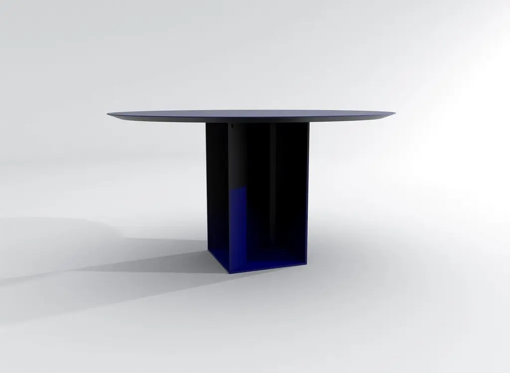 Contemporary Round Dining Table In Blue Powder-Coated Steel, Barh Judd Table