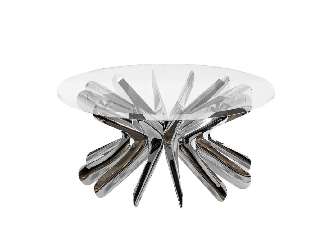 "Steel in Rotation No. 1" contemporary Copper Dining Table by ZietaOriginal Zieta Dining table, delivered with certificate. Collection: Steel in RotationMaterial: Polished copper base / Glass topSize:H 72 cm D 120 cmThe steel in rotation tables give the illusion of being in constant rotation due to the shape of their structure Zieta is best known for his collection of stools “Plopp” made through the technology FIDU. With the same principle Zieta Studio conceived mirror collections made of stainless steel called “Tafla”, “Rondo” and “Rondel”. Two laser-cut metal sheets are first welded together before air is injected between them until they separate from each other forming a three-dimensional object.The 'Tafla O' collection has a glossy steel finish inspired by drops of water. Its shape makes the mirror modern and contemporary.