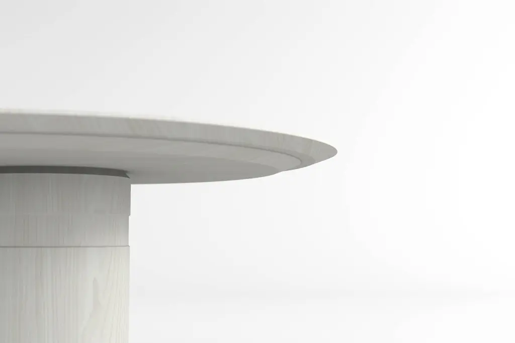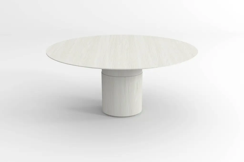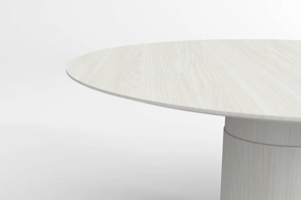 Contemporary Round Dining Table, White Ash Wood, Central Leg, Belgian Design
