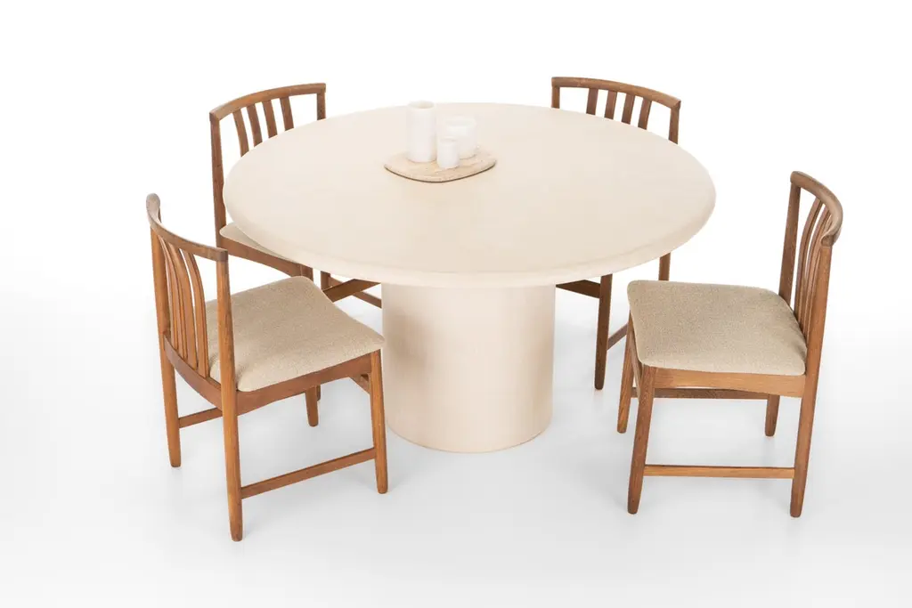 Contemporary Round Natural Plaster "Column" Table 80cm By Isabelle Beaumont
