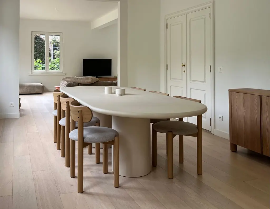 A contemporary Belgian design, handcrafted in natural plaster with a textured, earthy character. The surface is stain-resistant, easy to maintain, and pleasantly soft to the touch, unlike the cold feel of natural stone.Standard version for indoor use. Outdoor finish available on demand. (+20%).Latin adjective “columna” /koˈlum. na/: column, pillarEach piece is built on a wooden base and finished by hand with multiple layers of Mortex®, a premium plaster known for its durability in demanding applications such as bathrooms, stairs, and swimming pools. Mortex contains no epoxy or polyurethane resins.The plaster is applied using the a fresco method: Each layer is applied before the previous one has fully set, creating a perfect bond and a rich, seamless surface. The result is a tactile object with depth, warmth, and individuality. Subtle irregularities, natural shades, and variations are the signature of the craftsman, ensuring that no two tables are ever the same.Thanks to its understated, versatile character, the table integrates beautifully into a wide range of interior styles: from wabi-sabi and japandi to brutalism, minimalism, or contemporary design.Available in more than 80 colours, with endless options in size and shape. Samples are recommended, as slight variations in tone and texture are inherent to the artisanal process and the living nature of the material.Colour: BM32.5 Camel Ultra LightDisclaimer:The colours shown may differ from the colours of the applied product. We recommend ordering a sample. Please keep in mind that differing effects and nuances are to be expected when you compare the finished product to the provided sample. This is the result of the application process and the characteristics of the material. Due to the handmade character dimensions may vary by up to 1.5 cm.The customer is responsible for ensuring that products are used, handled, and maintained strictly in accordance with BB UNITED BV’s instructions and guidelines, provided with the product and/or available on demand. Warranty and liability shall not apply in cases of improper use, lack of maintenance, exposure to unsuitable environments, or use of cleaning products or methods not approved by BB UNITED BV.While certain products are treated and intended for outdoor use, BB UNITED BV cannot guarantee that products will remain unaffected under all climatic or environmental conditions. The customer is responsible for ensuring suitable placement, protection, and maintenance adapted to local weather circumstances. BB UNITED BV shall not be liable for weather-related damage or natural wear and tear.BB UNITED BV shall under no circumstances be liable for indirect, consequential, or incidental damages, including but not limited to shipping costs, customs duties, import taxes, installation costs, third-party claims, or loss of profit.