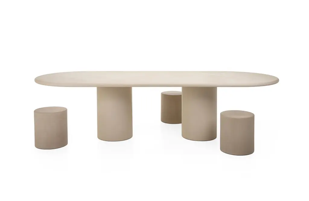 Contemporary Rounded Natural Plaster "Column" Table 200 Cm By Isabelle Beaumont