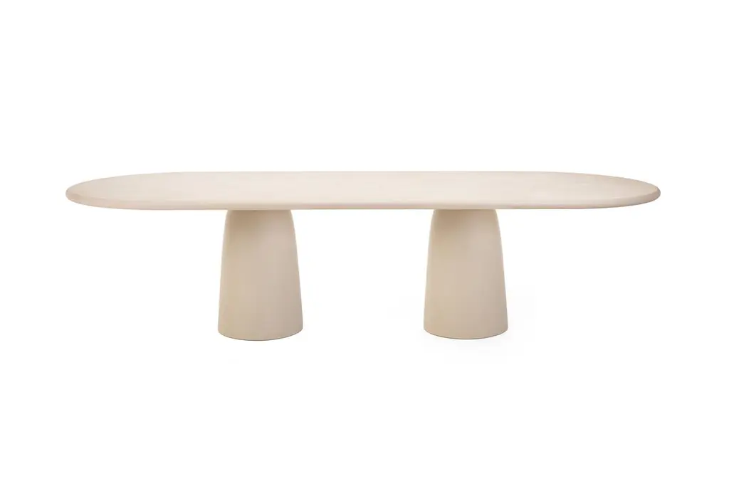 A contemporary Belgian design, handcrafted in natural plaster with a textured, earthy character. The surface is stain-resistant, easy to maintain, and pleasantly soft to the touch, unlike the cold feel of natural stone.Standard version for indoor use. Outdoor finish available on demand. (+20%).Inspired by the timeless menhir form, upright stones placed by prehistoric people in Celtic regions 4000-6000 years ago, the table carries a sense of monumentality and quiet strength.Each piece is built on a wooden base and finished by hand with multiple layers of Mortex®, a premium plaster known for its durability in demanding applications such as bathrooms, stairs, and swimming pools. Mortex contains no epoxy or polyurethane resins.The plaster is applied using the a fresco method: Each layer is applied before the previous one has fully set, creating a perfect bond and a rich, seamless surface. The result is a tactile object with depth, warmth, and individuality. Subtle irregularities, natural shades, and variations are the signature of the craftsman, ensuring that no two tables are ever the same.Thanks to its understated, versatile character, the Menhir Dining Table integrates beautifully into a wide range of interior styles: from wabi-sabi and japandi to brutalism, minimalism, or contemporary design.Available in more than 80 colours, with endless options in size and shape. Samples are recommended, as slight variations in tone and texture are inherent to the artisanal process and the living nature of the material.Colour: BM32.5 Camel Ultra Light Disclaimer:The colours shown may differ from the colours of the applied product. We recommend ordering a sample. Please keep in mind that differing effects and nuances are to be expected when you compare the finished product to the provided sample. This is the result of the application process and the characteristics of the material. Due to the handmade character dimensions may vary by up to 1.5 cm.The customer is responsible for ensuring that products are used, handled, and maintained strictly in accordance with BB UNITED BV’s instructions and guidelines, provided with the product and/or available on demand. Warranty and liability shall not apply in cases of improper use, lack of maintenance, exposure to unsuitable environments, or use of cleaning products or methods not approved by BB UNITED BV.While certain products are treated and intended for outdoor use, BB UNITED BV cannot guarantee that products will remain unaffected under all climatic or environmental conditions. The customer is responsible for ensuring suitable placement, protection, and maintenance adapted to local weather circumstances. BB UNITED BV shall not be liable for weather-related damage or natural wear and tear.BB UNITED BV shall under no circumstances be liable for indirect, consequential, or incidental damages, including but not limited to shipping costs, customs duties, import taxes, installation costs, third-party claims, or loss of profit.