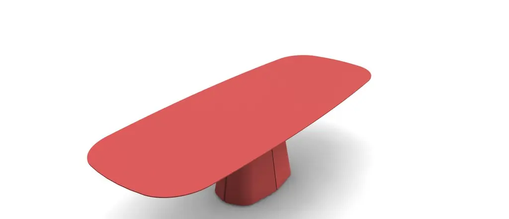 Contemporary Sculptural Dining Table With Oval Top In Cherry Red Lacquer
