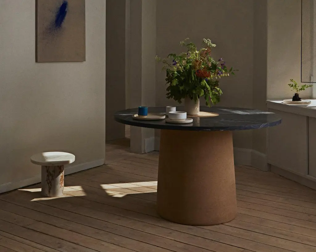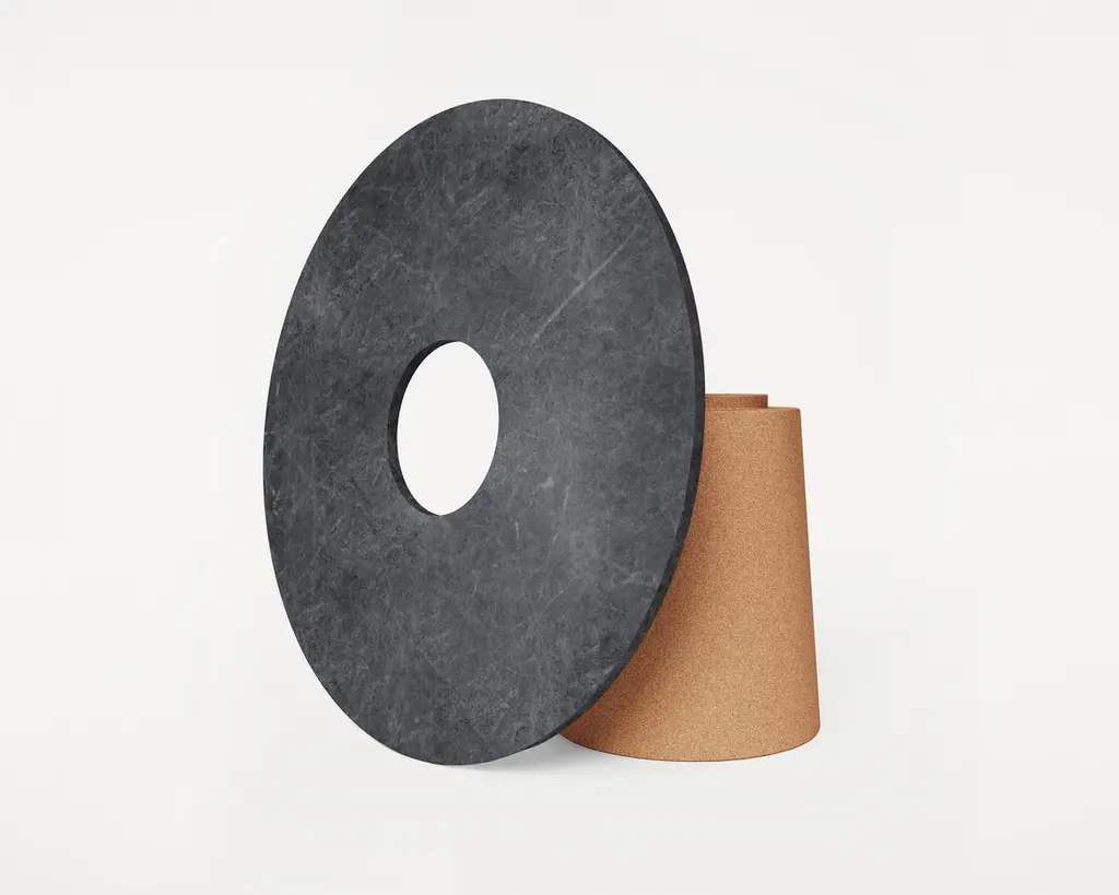 Suitable as a dining or meeting table where the contrast between the soft warm cork, meets the cold smooth marble. The distinction between the two shapes gives the impression of two worlds meeting one another.Features– Seats 5-7 people– Variations can appear due to natural materials.– Can be made to order with different table topsDesign– Nicholai Wiig Hansen, 2011– Signature Collection