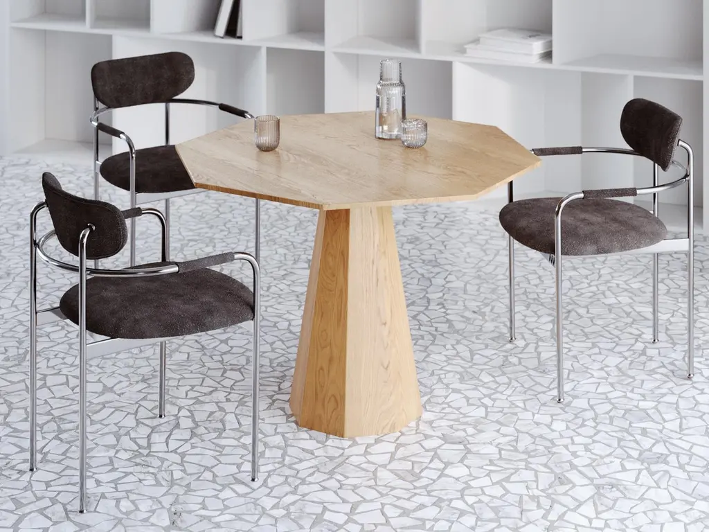 This contemporary dining table is crafted from solid oak in a natural finish, highlighting the authentic grain, warm tones, and timeless character of the wood. Its design is defined by bold geometric forms that add a sculptural presence, turning the piece into a striking focal point in any interior. The round tabletop creates a sense of balance and harmony, while the expressive base provides both durability and artistic appeal. Perfect as a dining table or as a centerpiece in a living or meeting space, it brings together modern design and nature’s enduring beauty. Each table is handcrafted by VulpeConcept artisans, merging traditional craftsmanship with a contemporary vision, resulting in furniture that is both functional and artistic.Tags:#SolidOak #NaturalOak #DiningTable #GeometricDesign #ContemporaryFurniture #Handcrafted #ModernInteriors #VulpeConcept #SculpturalFurniture #LuxuryFurniture #InteriorDesign #StatementTable #OakFurniture #MinimalistDesign #UniqueFurniture #ModernDining #HomeDecor #DesignCollectors #ArtisanMade #TimelessStyle