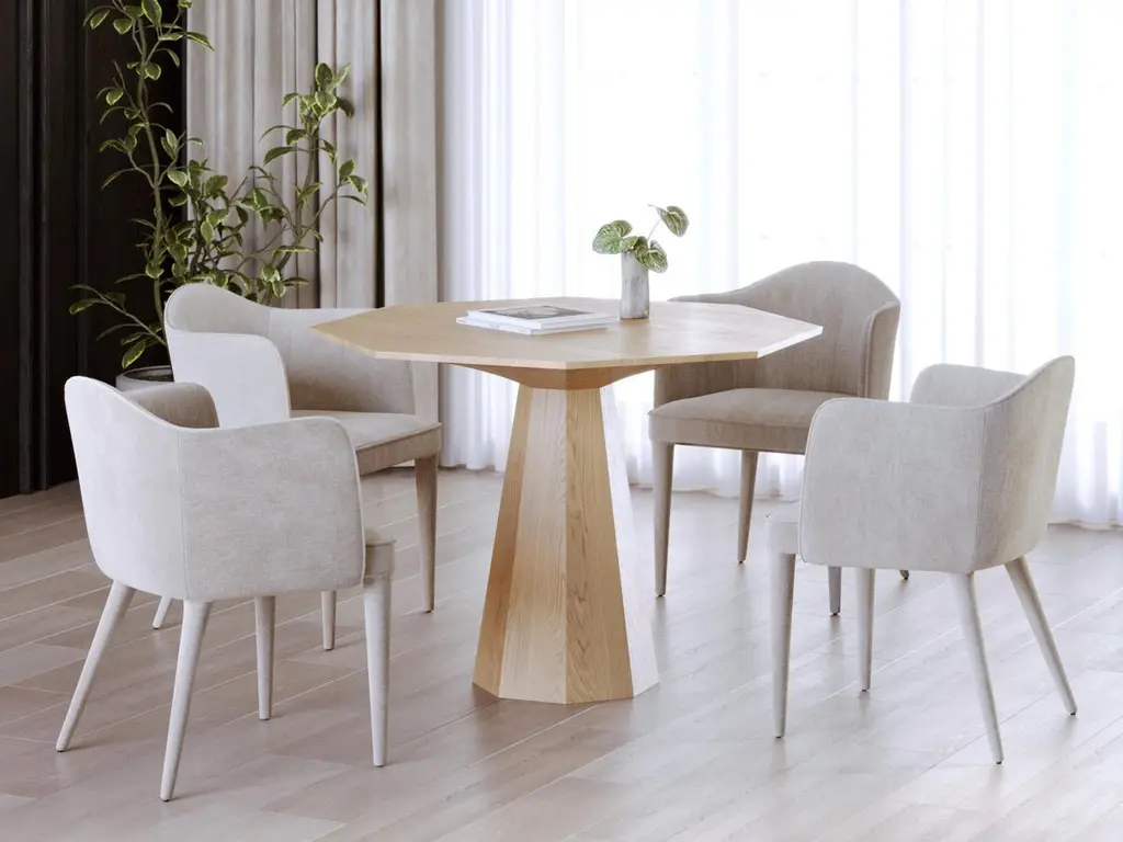 Contemporary Solid Oak Dining Table In Natural Finish With Geometric Forms