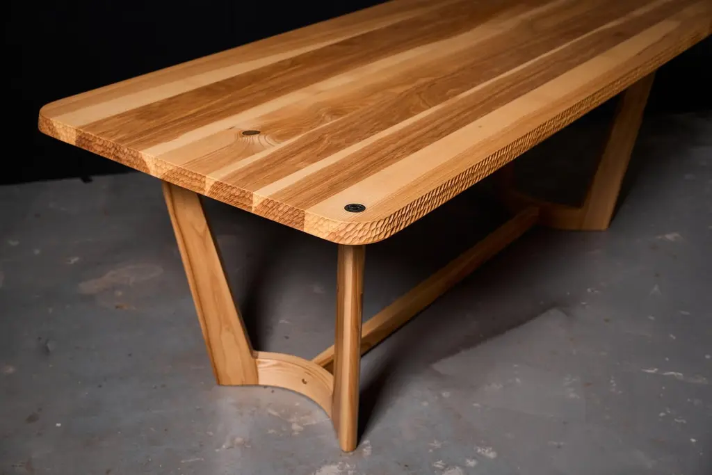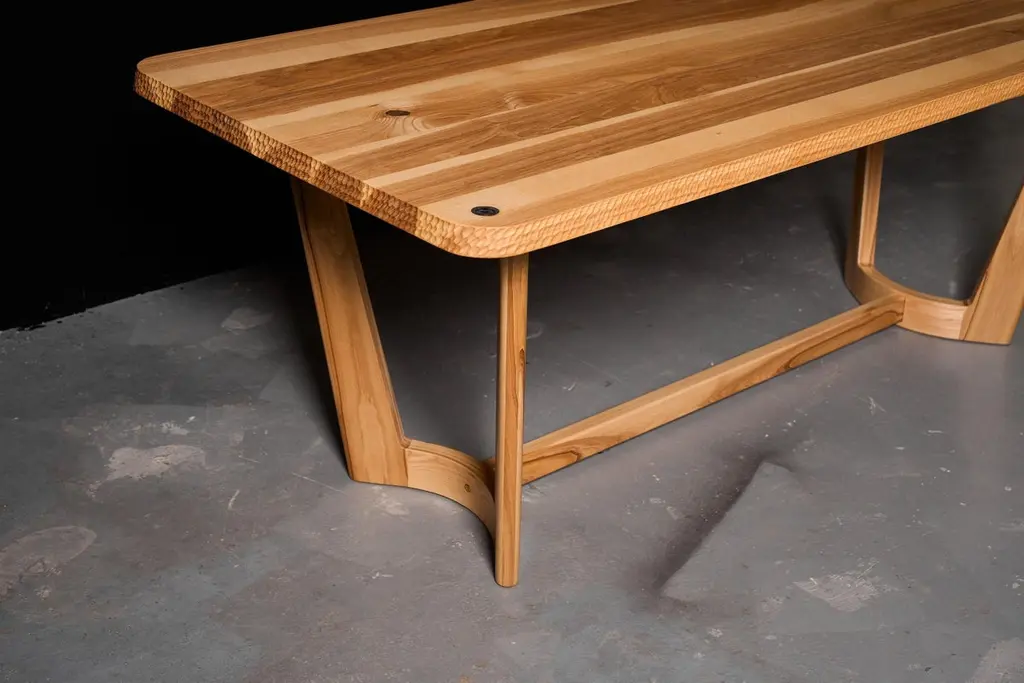 Contemporary Style Table with Handcrafted Edge Decoration in Solid AshTransform your interior with our contemporary style table made from solid ash wood. This premium table combines elegant modern design with the natural beauty of ash, offering the perfect solution for creating a stylish and functional space.Special attention is given to the handcrafted edge decoration, which emphasizes the unique texture of the wood and adds an additional accent. Each piece is crafted with love and precision, making this table a true work of art and showcasing the highest level of craftsmanship.The artisans at VulpeConcept have been creating solid wood furniture for over 10 years, putting their experience and soul into every piece. They skillfully blend modern technologies with traditional methods, ensuring each table is not only functional but also a unique element of your interior.This table is an ideal choice for dining rooms, offices, and living spaces, adding a touch of luxury and sophistication to your home. It will not only become the centerpiece of your space but also a symbol of your impeccable taste and commitment to quality.