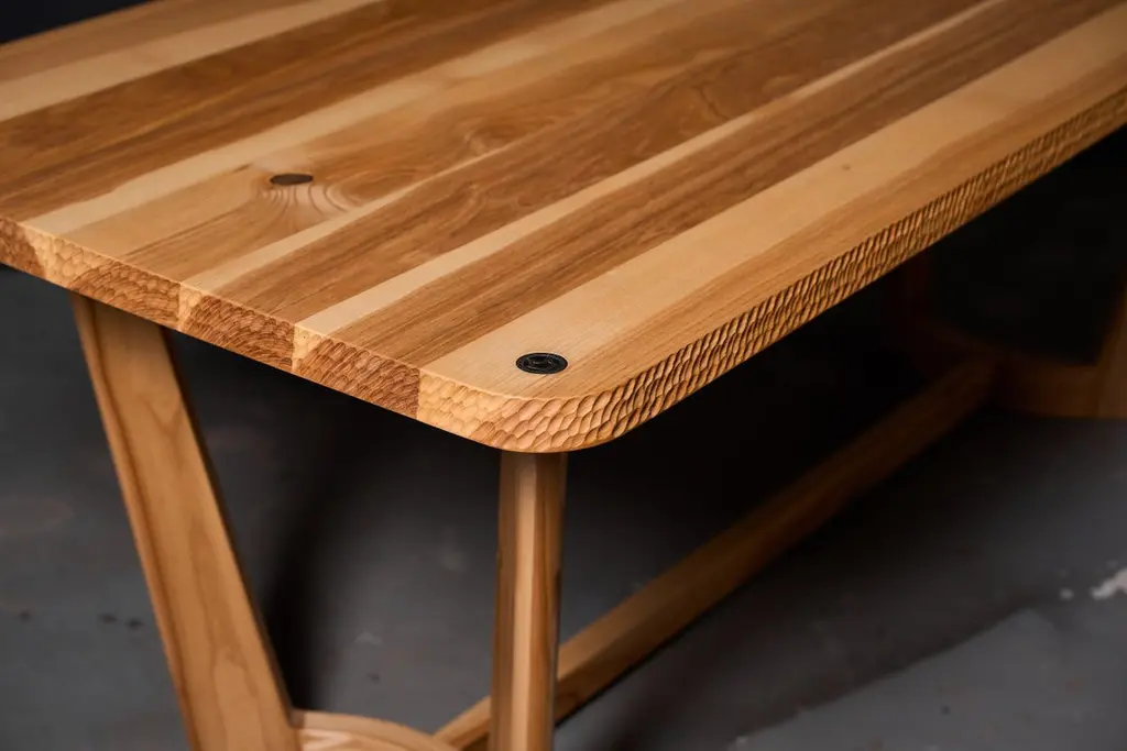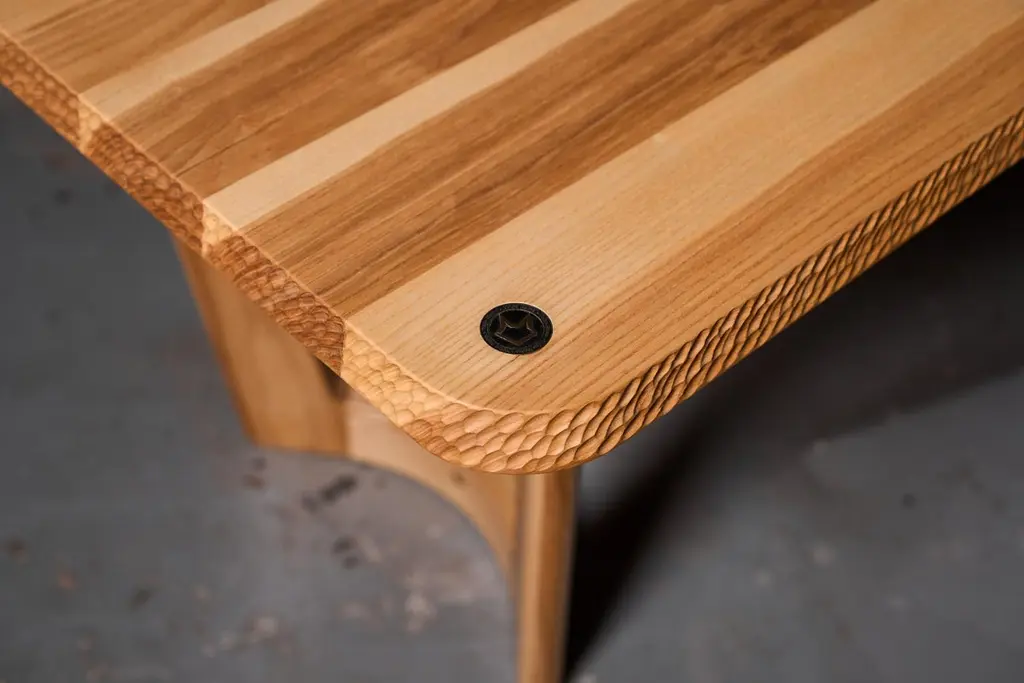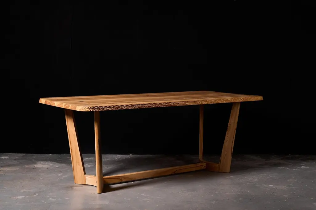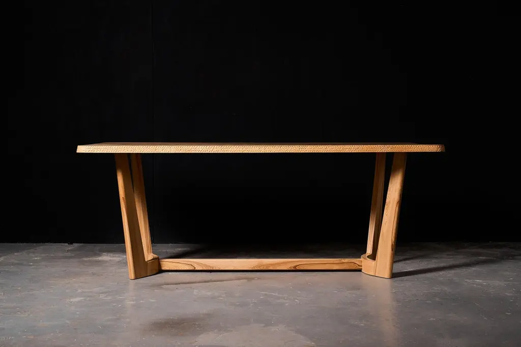 Contemporary Style Table With Handcrafted Edge Decoration In Solid Wood