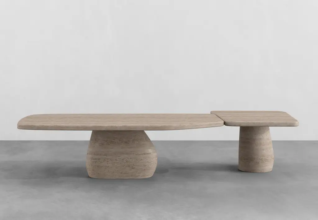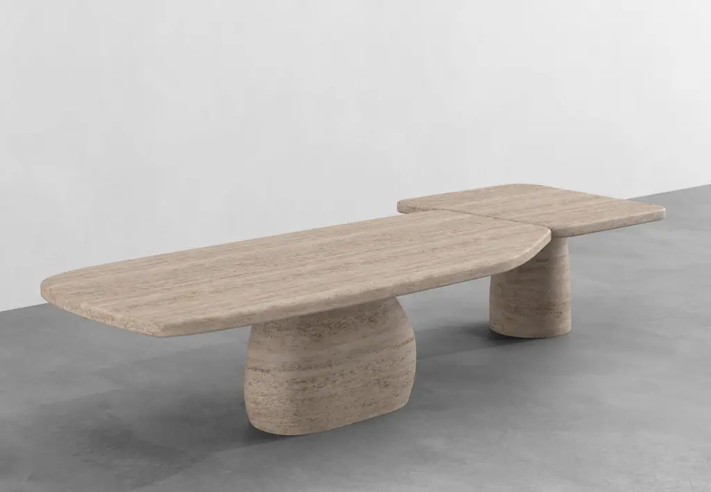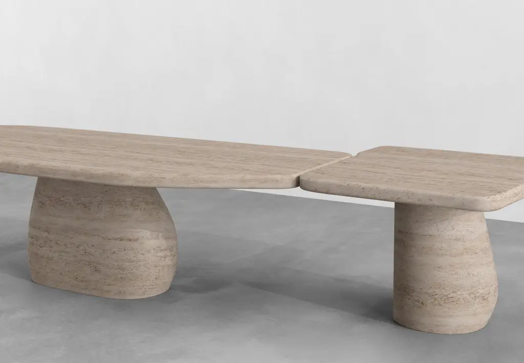 Contemporary Travertine Pigalle, 330 Dining Table By Armand & Francine