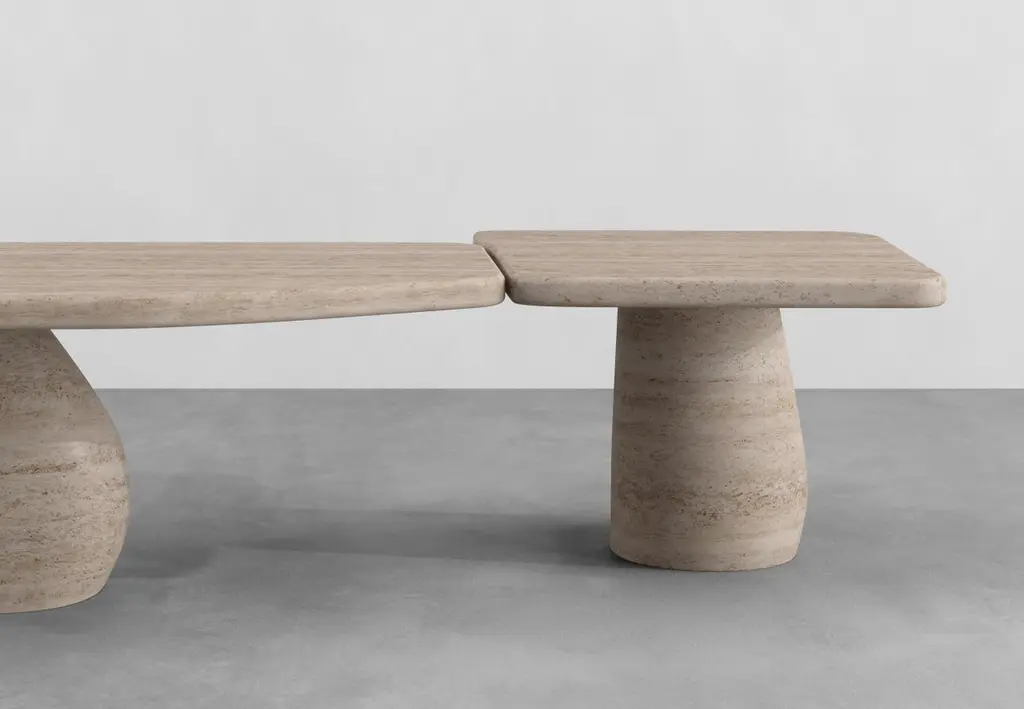 Contemporary Travertine Pigalle, 390 Dining Table By Armand & Francine