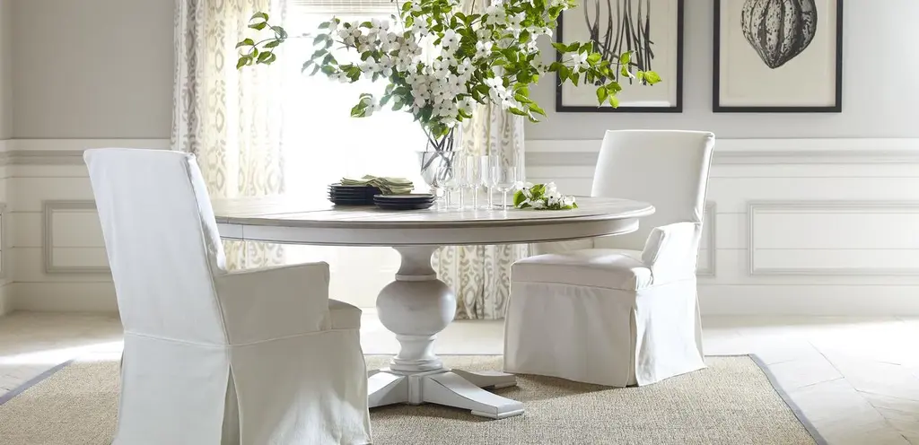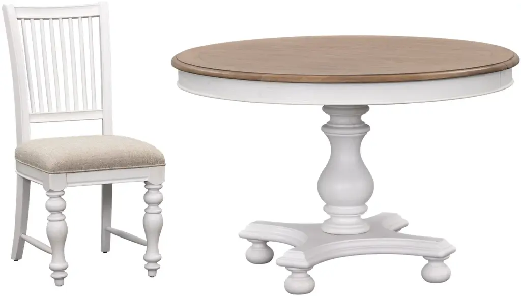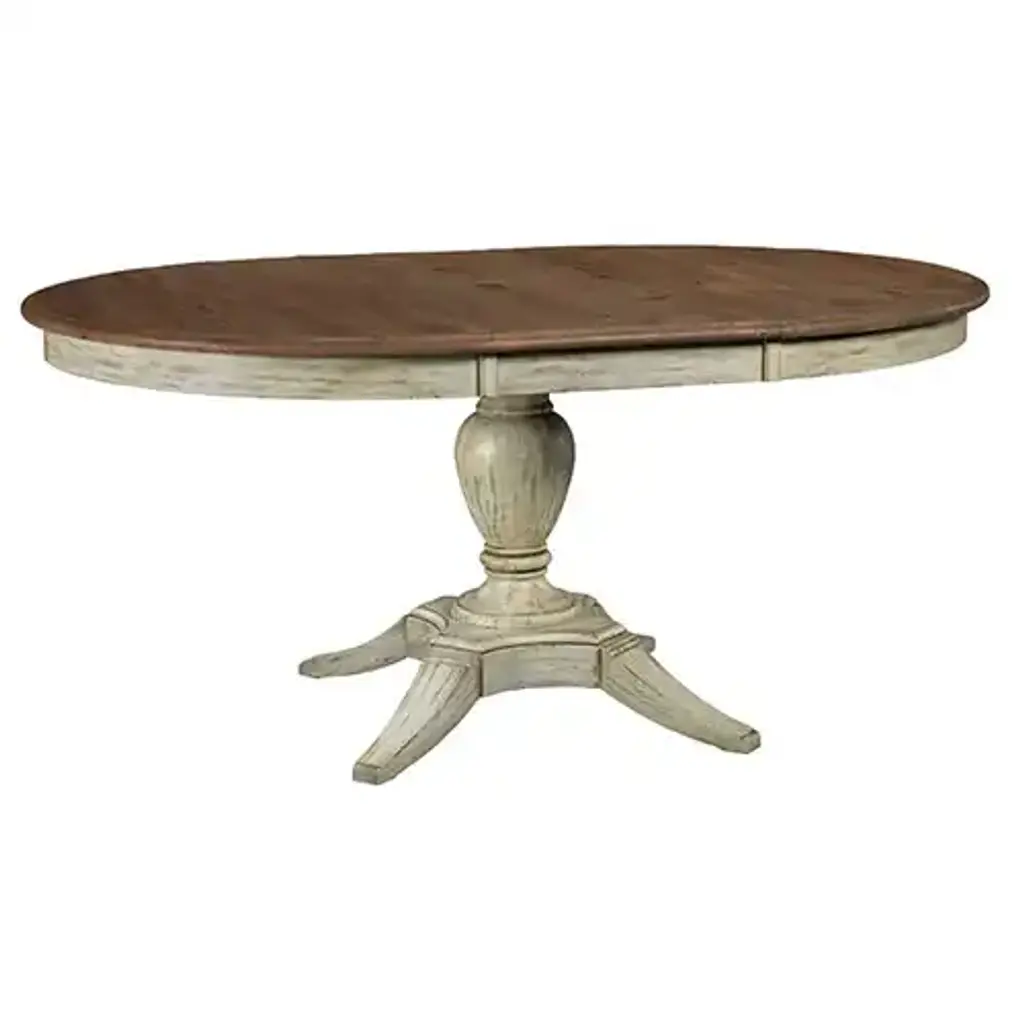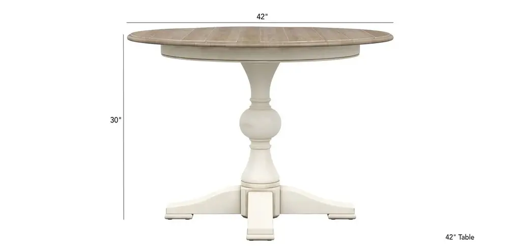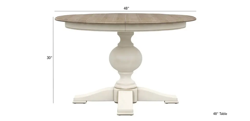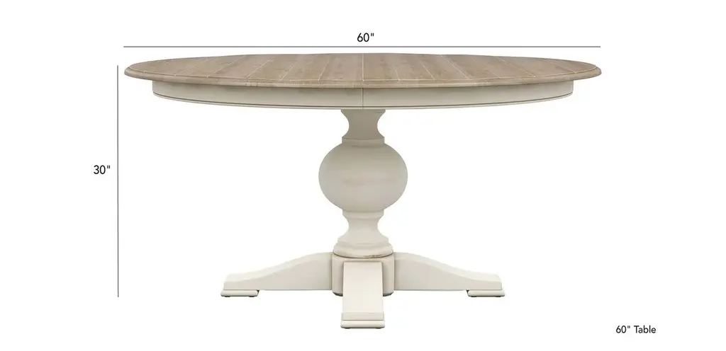 Farmhouse fresh with modern appeal. This elegant table fuses charming country influences with a bold pedestal for an updated vibe. Now available with a rich menu of custom options, including tabletop diameter (36", 42", 48", 60", or 72"), tabletop treatment (smooth or rough-sawn), and finish colors.