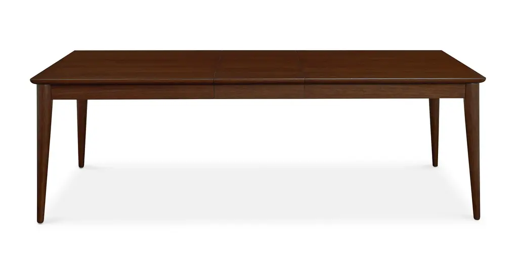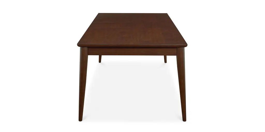With its classic design of rounded edges and tapered legs, our Copenhagen Rectangle Dining Table with Leaf introduces Danish-inspired style to your dining room. The table's simple, understated elegance in espresso-finished walnut easily adapts to and enhances both modern and classic decor. Set a table for a few or many, with a self-storing leaf included to expand the table from 72" to 90" long. Enjoy pairing the artisan-crafted table with other pieces from our Copenhagen Collection to curate a personalized dining environment.