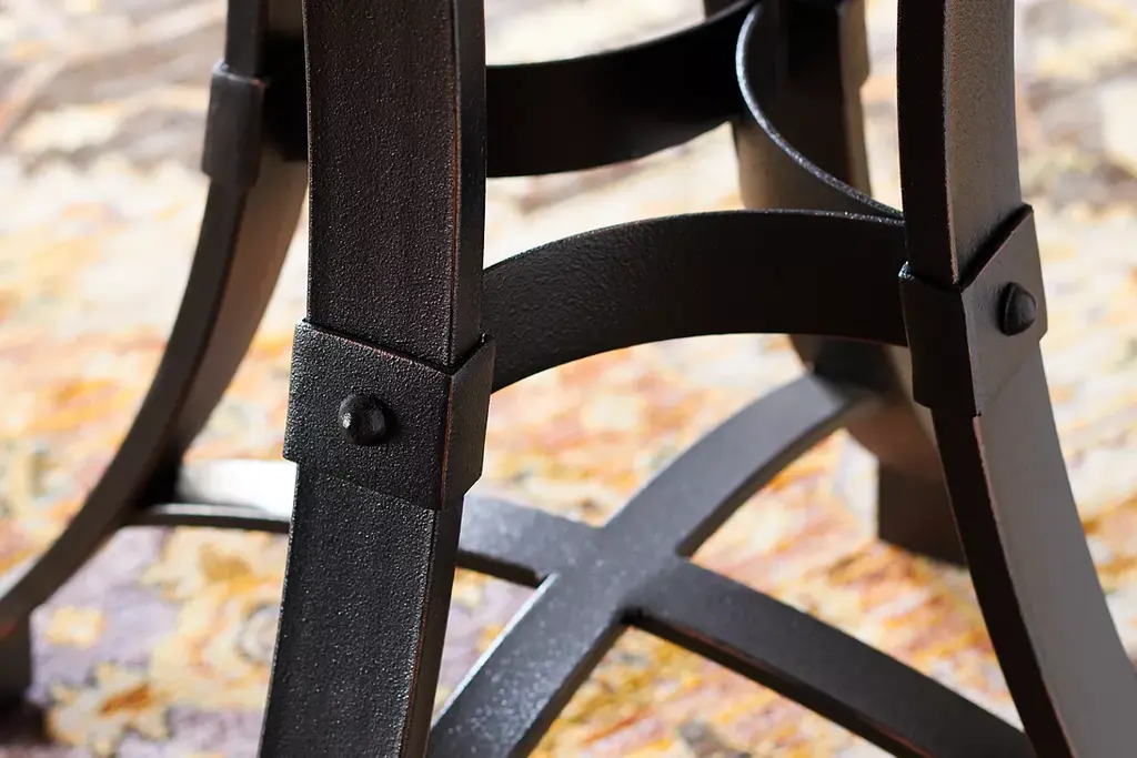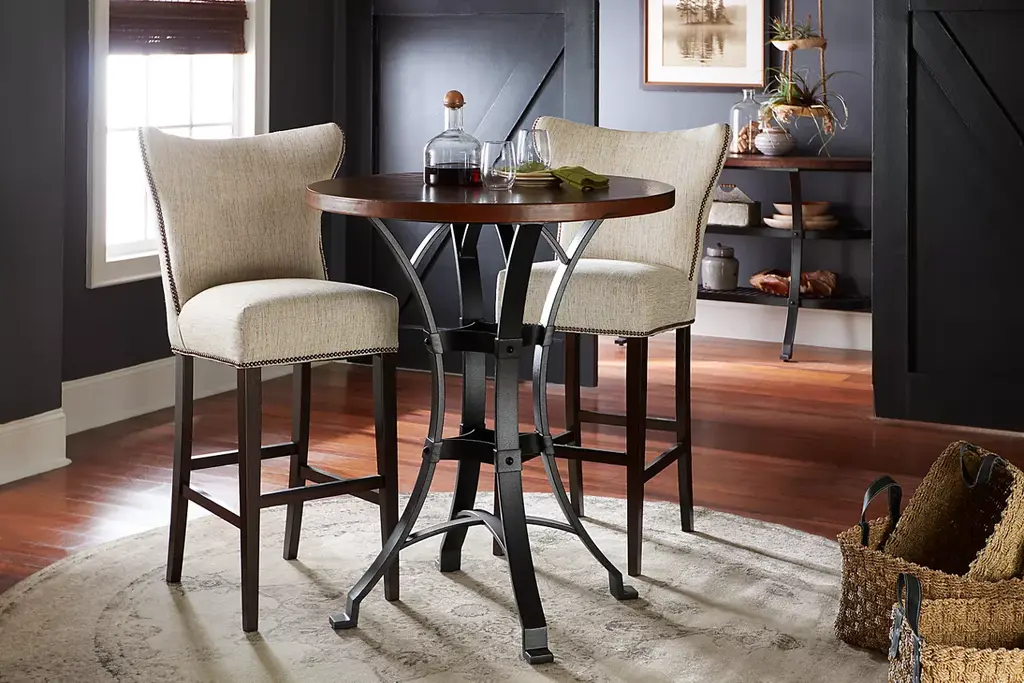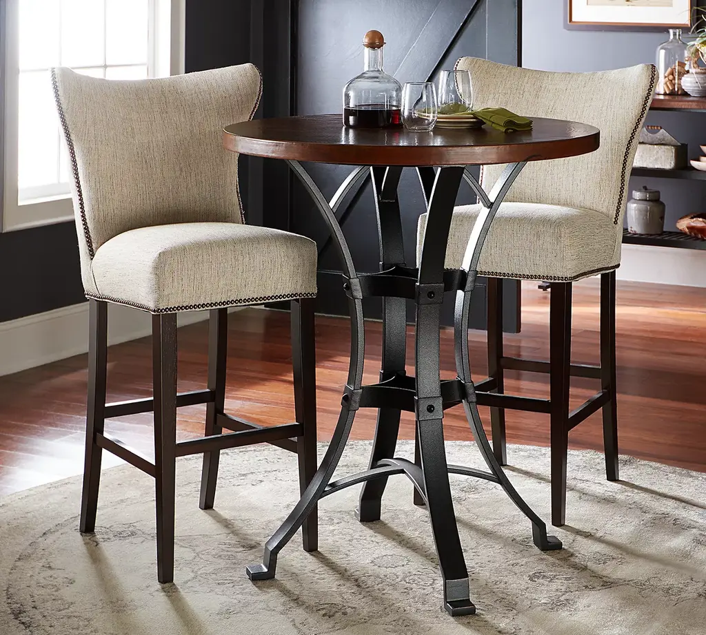 Pull a stool up to our Copper Canyon pub table. Taller than its dining counterpart, this piece is the perfect casual addition to your dining area. It exudes an air of industrial elegance and updated detailing. With a rounded, hand-hammered, acid treated and burnished copper table top and a matte black metal pedestal base, this piece is as unique as it inviting. Shown with our