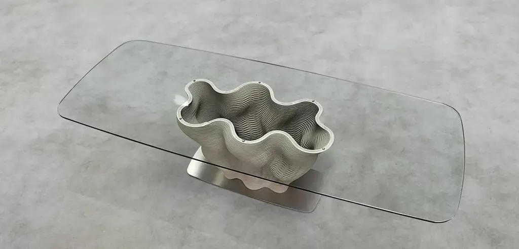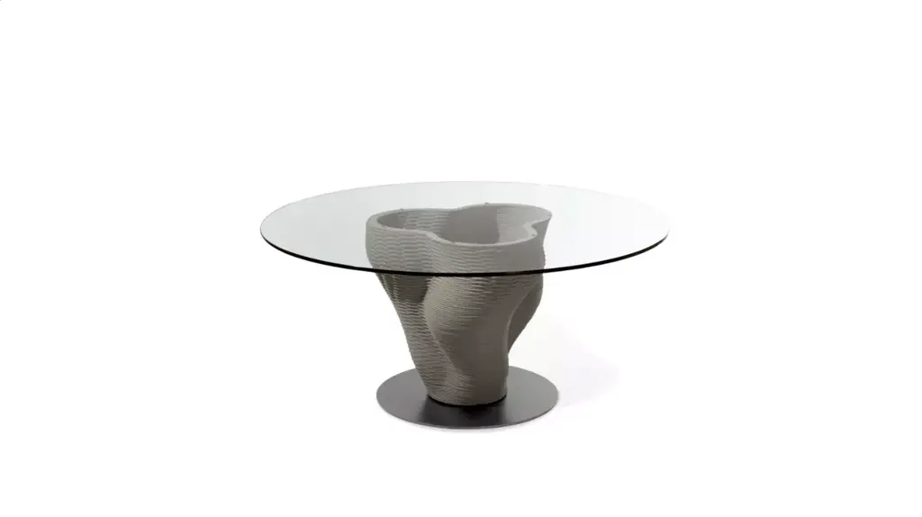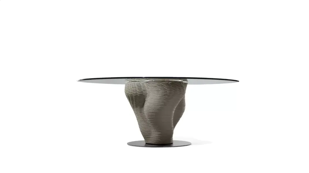 With the CORAIL table, Roche Bobois achieved a world first in furniture in 2020: a base made of concrete using a 3D printer, which is customizable (one can not only choose its shape and size but also apply a weaving effect wherever desired, watching the result live). In a continuous movement from bottom to top, the digitally controlled nozzle of the giant 3D printer, a marvel of technology, deposits a snake of concrete that hardens as it layers, then over 20 days. With its shape reminiscent of polypore mushrooms embedded in trees, corals on their reef, or huge baroque shells, Corail is primarily a superb object inspired by the beauty of natural imperfection, and which allows the imagination of its adopter to run free.